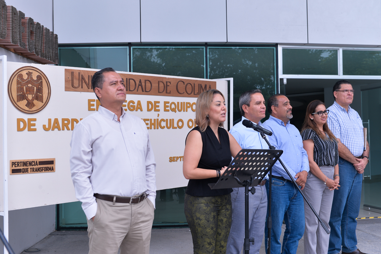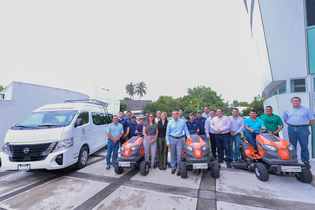 La Universidad de Colima, a través de su Coordinación General Administrativa y Financiera (CGAF), entregó este viernes equipo de jardinería y un vehículo de transporte de gran capacidad, a personal de las delegaciones de Colima, Tecomán y Coquimatlán, así como a la Coordinación General de Comunicación Social.