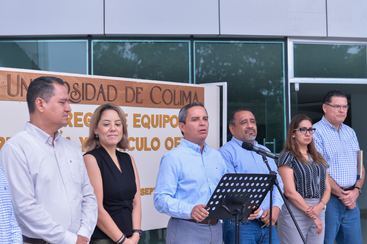 También acompañaron al rector Juan Diego Gaytán, delegado de Colima; Francisco Ventura, delegado del campus Coquimatlán y Carlos Montes, delegado de Tecomán, además de Jorge Martínez, coordinador general de Comunicación Social; Jessica Morales, tesorera; Víctor Aldana, director general de Patrimonio Universitario y Gustavo García, director general de Proveeduría.