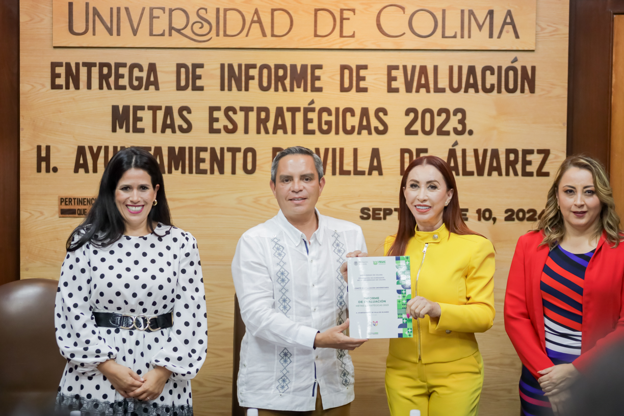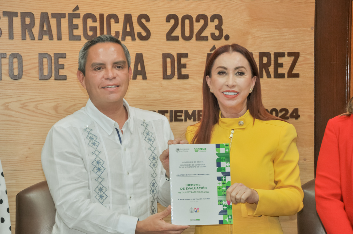 El martes por la tarde, el rector Christian Jorge Torres Ortiz Zermeño entregó los resultados del Informe de Evaluación de Metas Estratégicas 2023 del Ayuntamiento de Villa de Álvarez, que realizaron académicos y expertos de la Universidad de Colima (UdeC). coordinados por la Federación de Egresados de la Universidad de Colima (FEUC)