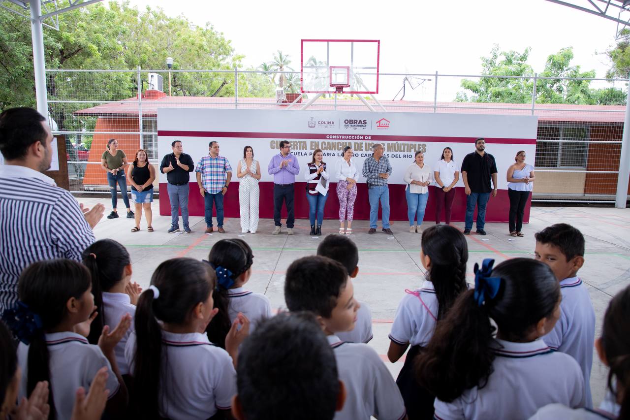 La gobernadora de Colima, Indira Vizcaíno Silva, entregó este jueves otras dos #ObrasQueTransforman: la construcción de aula en la escuela primaria ‘Jesús Silverio Cavazos Ceballos’ y colocación de estructura metálica con cubierta en la primaria ‘Lázaro Cárdenas del Río’, en Tecomán. Entre ambas obras se invirtieron 2 millones 822 mil pesos.