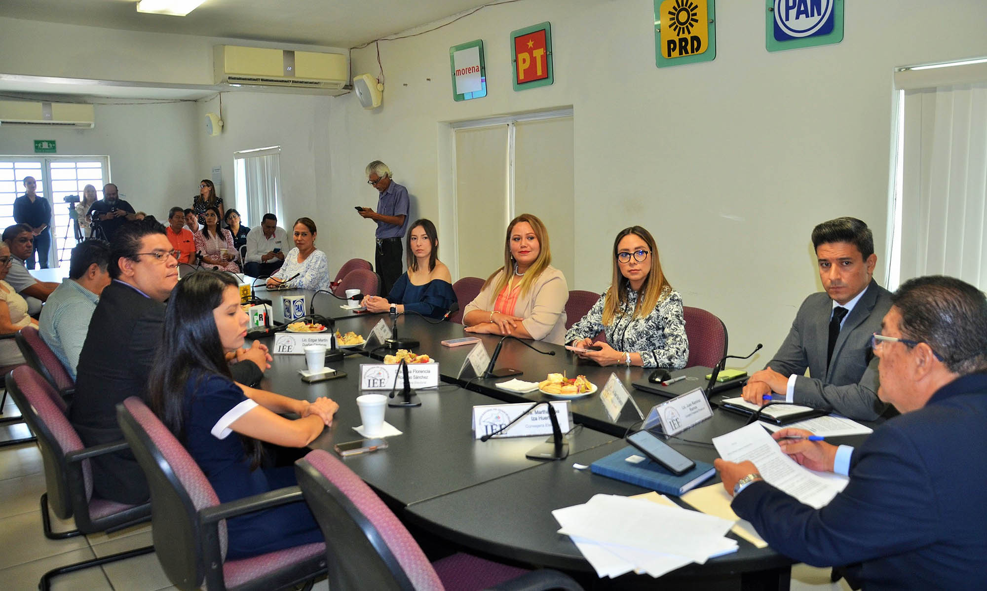 Al hacer uno de la voz, las y los integrantes del Órgano Superior de Dirección: Consejeras Electorales, Arlen Martínez Fuentes, Rosa Elizabeth Carrillo Ruiz y Ana Florencia Romano; el Consejero Electoral, Martín Dueñas; y representaciones de los partidos políticos; aplaudieron la designación de Juan Ramírez Ramos como Consejero Presidente Provisional del IEE, y refrendaron su apoyo y compromiso para trabajar de manera colegiada a favor de la institución, la ciudadanía y la democracia.