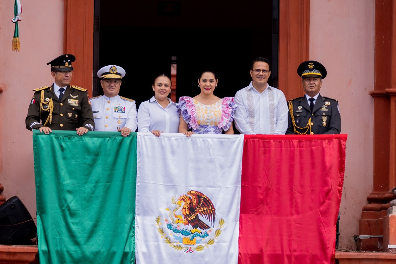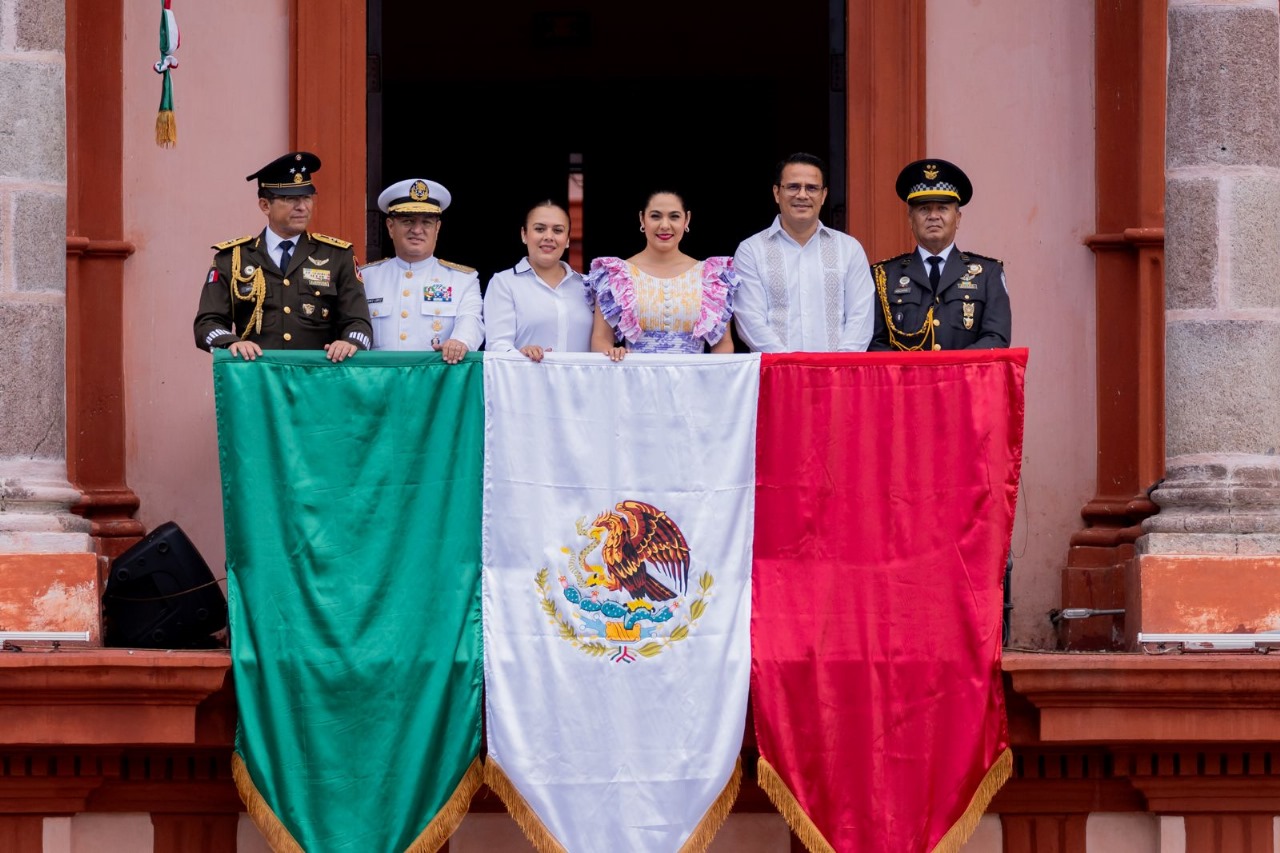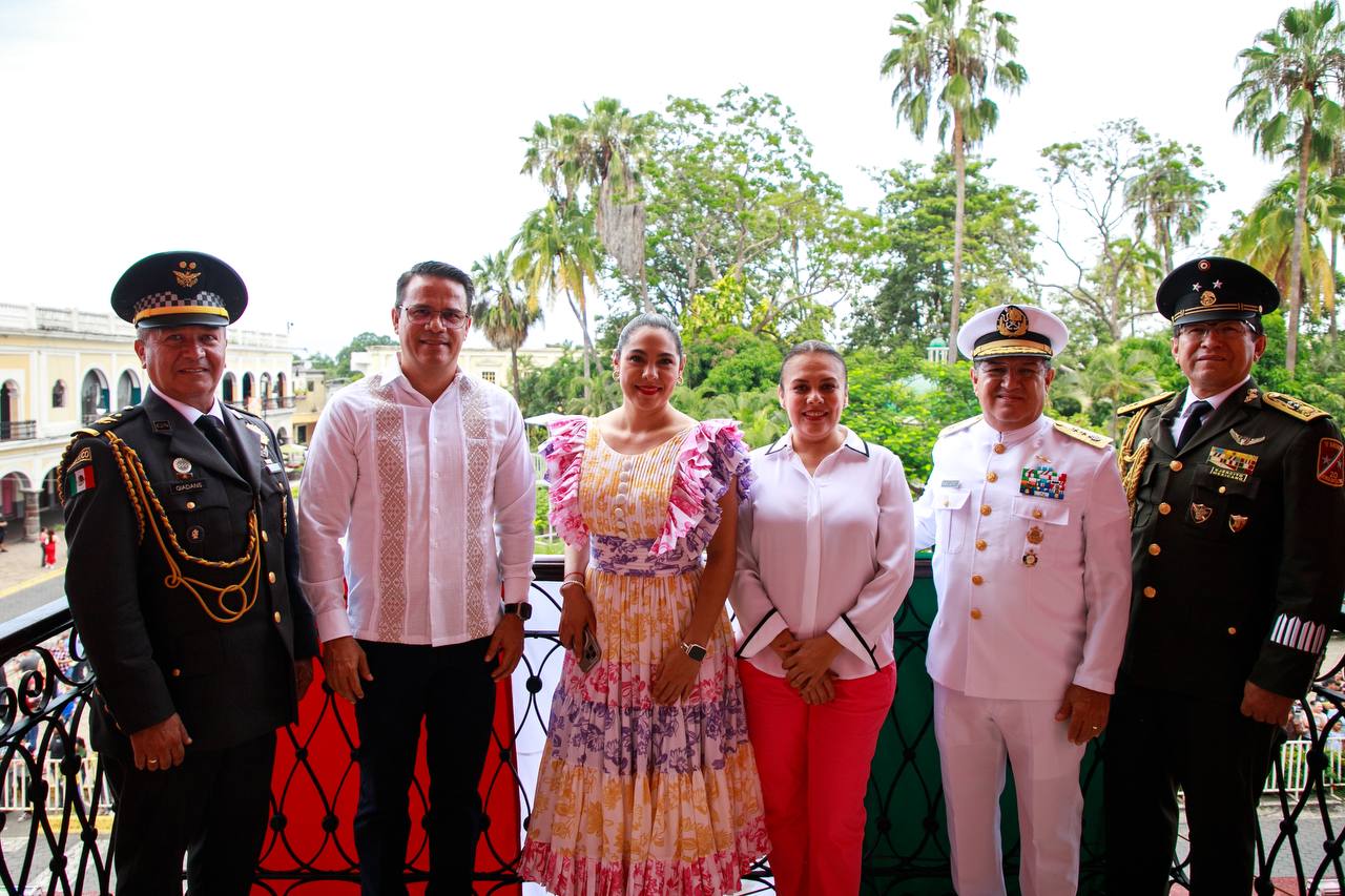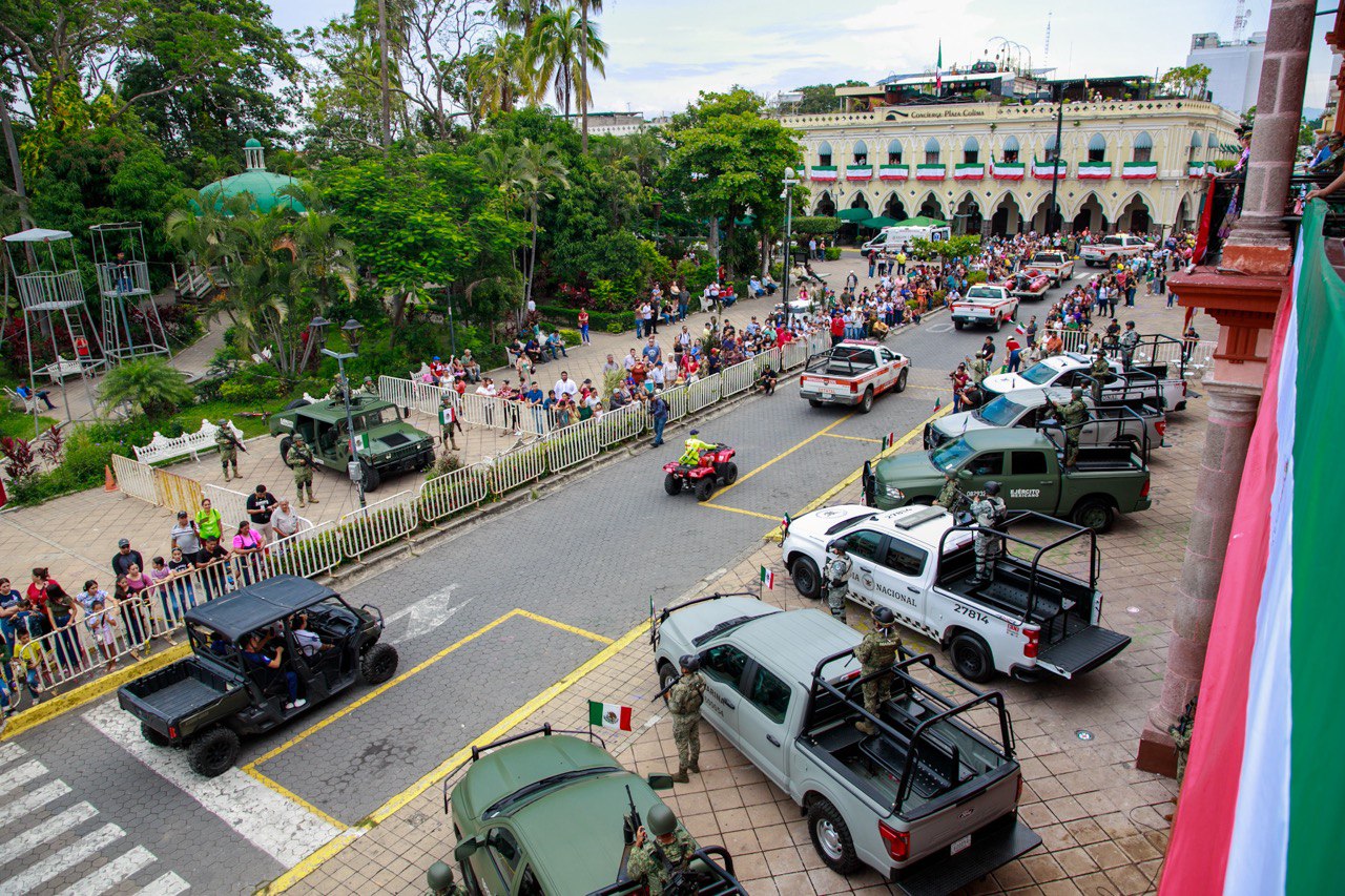 Desde el balcón central en Palacio de Gobierno, la mandataria estatal, junto los titulares de los Poderes Legislativo y Judicial, los comandantes de la Vigésima Zona Militar de Colima, de la Décima Región Naval de Manzanillo, y de la Coordinación Estatal de la Guardia Nacional en la entidad, presenciaron el paso de cada uno de los bloques que integraron el desfile, mismos que también pudieron contemplar las y los colimenses que se dieron cita en el centro histórico, este lunes.