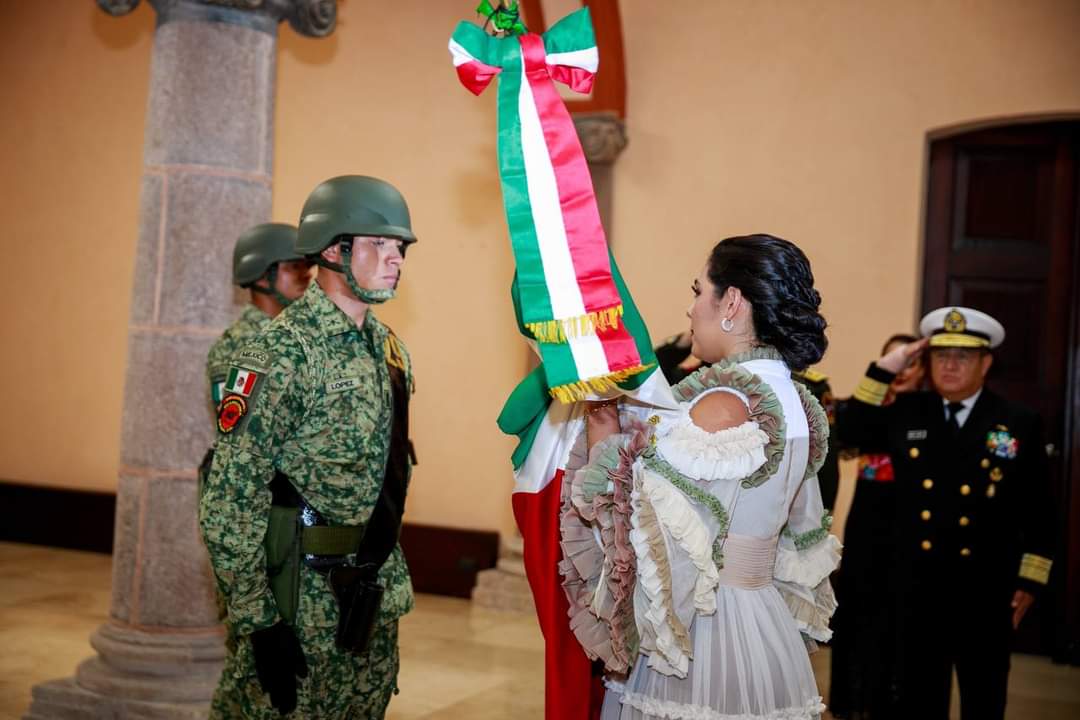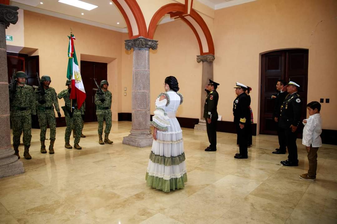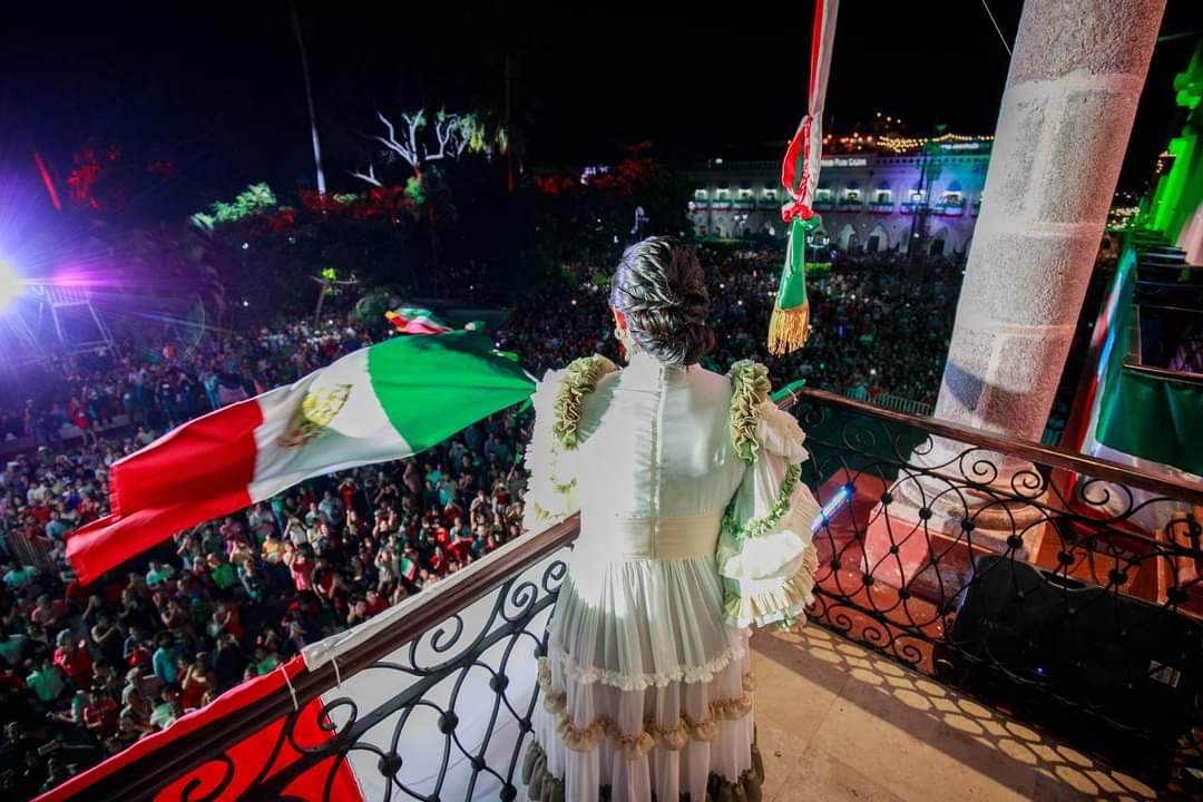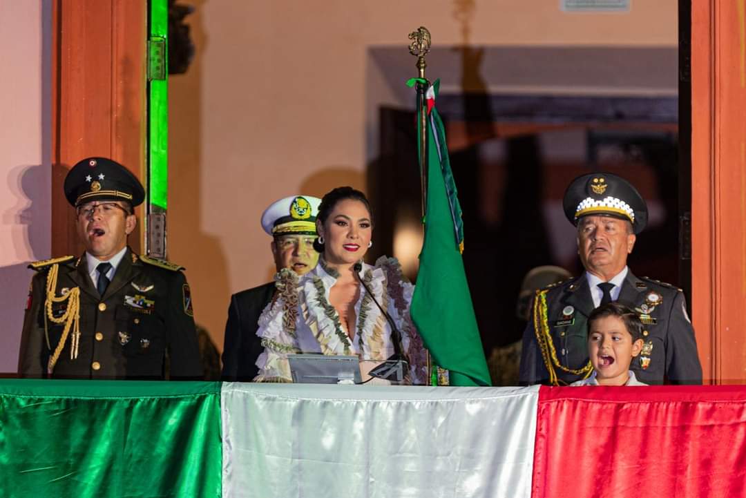 Luego del protocolo inicial, estando ya en el balcón portando el Lábaro Patrio, la mandataria estatal, además de recordar a las y los héroes que participaron en la lucha por la Independencia de México, pidió que vivan las mujeres que abren camino a otras mujeres; la democracia y la justicia, así como la transformación de México en una patria más igualitaria y justa.