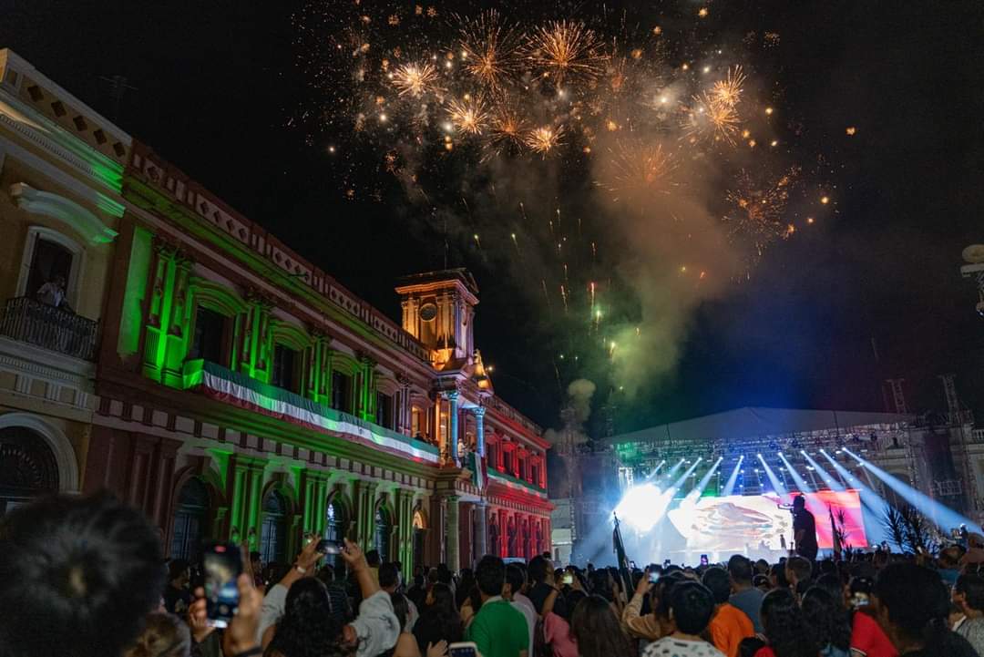 La noche de este domingo, la gobernadora Indira Vizcaíno Silva, encabezó desde el balcón central del Palacio de Gobierno, la ceremonia del Grito de Independencia por el 214º aniversario del inicio de este hecho histórico, ante miles de colimenses que se dieron cita en el centro histórico de la capital del estado, para celebrar este acontecimiento, en un ambiente festivo y pacífico.