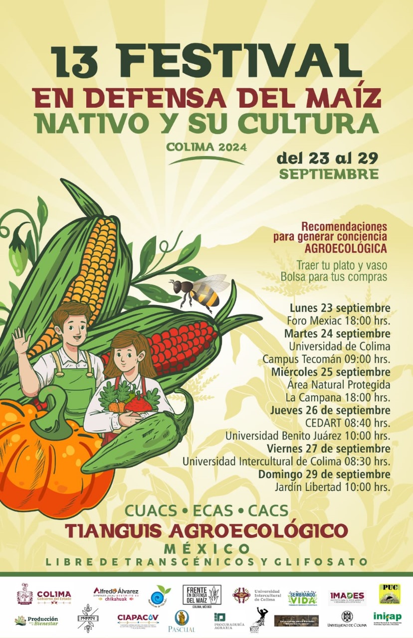 Concursos, conferencias, multi-trueques y convivencia universitaria son algunos de los eventos que se realizarán el próximo viernes 27 de septiembre, desde las 8:30 de la mañana hasta las 12:30 de la tarde, en la Universidad Intercultural de Colima (UIC), campus Comala, en el marco de las actividades programadas para el XIII Festival en defensa del maíz nativo y su cultura.