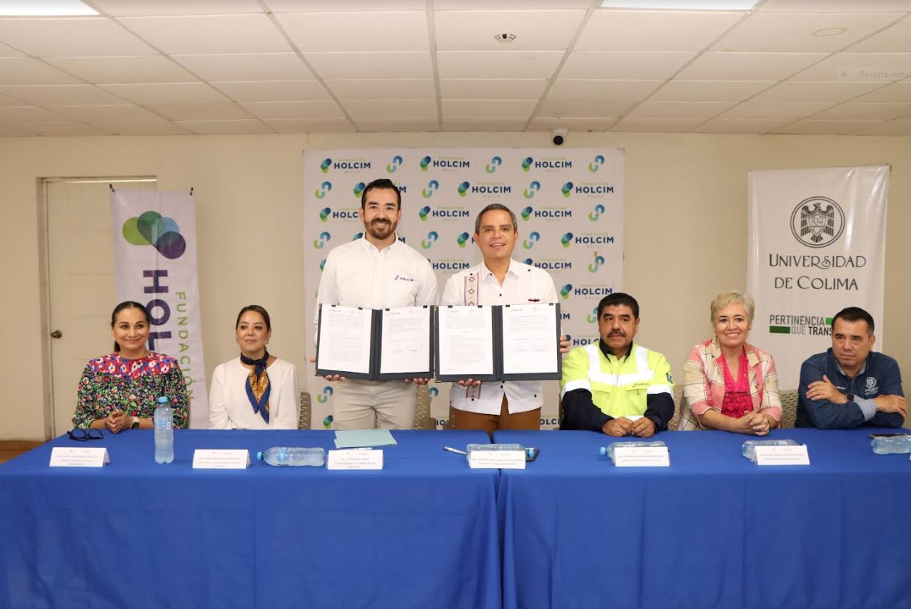 *“En la Fundación Holcim México y en esta compañía, creemos que la educación es la base para transformar todas las comunidades que tenemos, por eso nos da mucho gusto el poder firmar este convenio de colaboración”: Felipe Araiz. Con el propósito de beneficiar a los hijos e hijas de trabajadores para que puedan continuar sus estudios superiores, este martes la Universidad de Colima y el Grupo Holcim México firmaron un convenio de colaboración en las instalaciones de la planta cementera, ubicada en el municipio de Tecomán.
