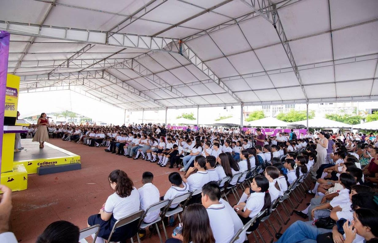 La mandataria recordó, ante las y los estudiantes reunidos en la explanada de la plaza Benito Juárez del centro histórico de Manzanillo, que éste es el tercer año que se entregan computadoras, destacando que ColiBecas es un programa mucho más amplio, que contempla, además, la entrega gratuita de uniformes, mochilas y útiles y un apoyo económico, a través de Mi ColiBeca para Empezar.