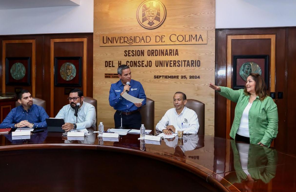 Durante la sesión ordinaria del Consejo Universitario, que se desarrolló de manera híbrida en la sala de juntas de rectoría y por la plataforma ZOOM, se tuvo un cuórum legal de 347 concejales (93.53%). Estuvo encabezada por Christian Jorge Torres Ortiz Zermeño, rector de la Universidad de Colima y presidente del Consejo. Lo acompañaron Joel Nino, secretario general; Luis Enrique Zamorano Manríquez, secretario general del SUTUC y Camilo Alejandro García Morales, presidente de la FEC