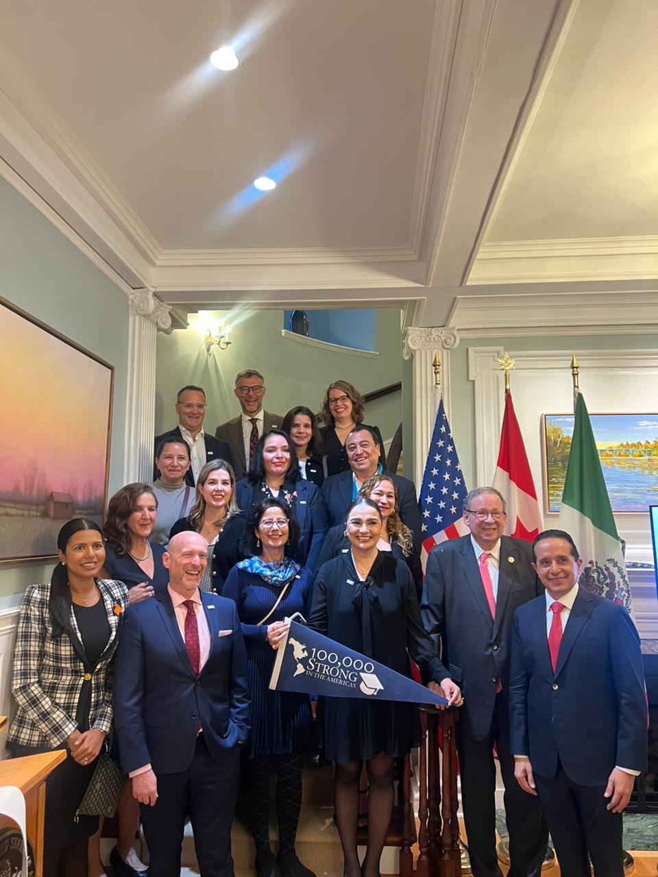 La convocatoria 100K Strong North America es apoyada por Partners of the Americas en colaboración con la oficina de Asuntos del Hemisferio Occidental del Departamento de Estado de los Estados Unidos y las embajadas de los EEUU en Ottawa y México. Cuenta con el apoyo de Global Affairs Canada (GAC) y Amazon, para expandir la cooperación innovadora e inclusiva en educación superior y los intercambios de estudiantes y profesores entre los tres países.