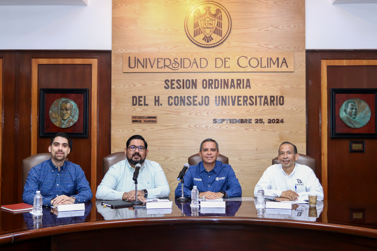 La sesión, realizada esta semana, estuvo presidida por Christian Jorge Torres Ortiz Zermeño, rector de la UdeC y presidente del Consejo. Lo acompañaron en el presídium Joel Nino, secretario general; Luis Enrique Zamorano Manríquez, secretario general del SUTUC y Camilo Alejandro García, presidente de la FEC.