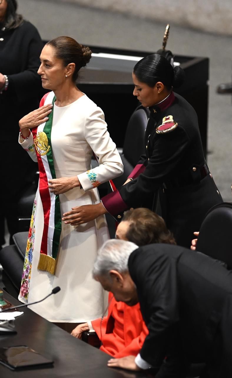 * “Soy madre, abuela, científica y mujer de fe. Y a partir de hoy, por voluntad del pueblo de México, la Presidenta Constitucional de los Estados Unidos Mexicanos”, destacó