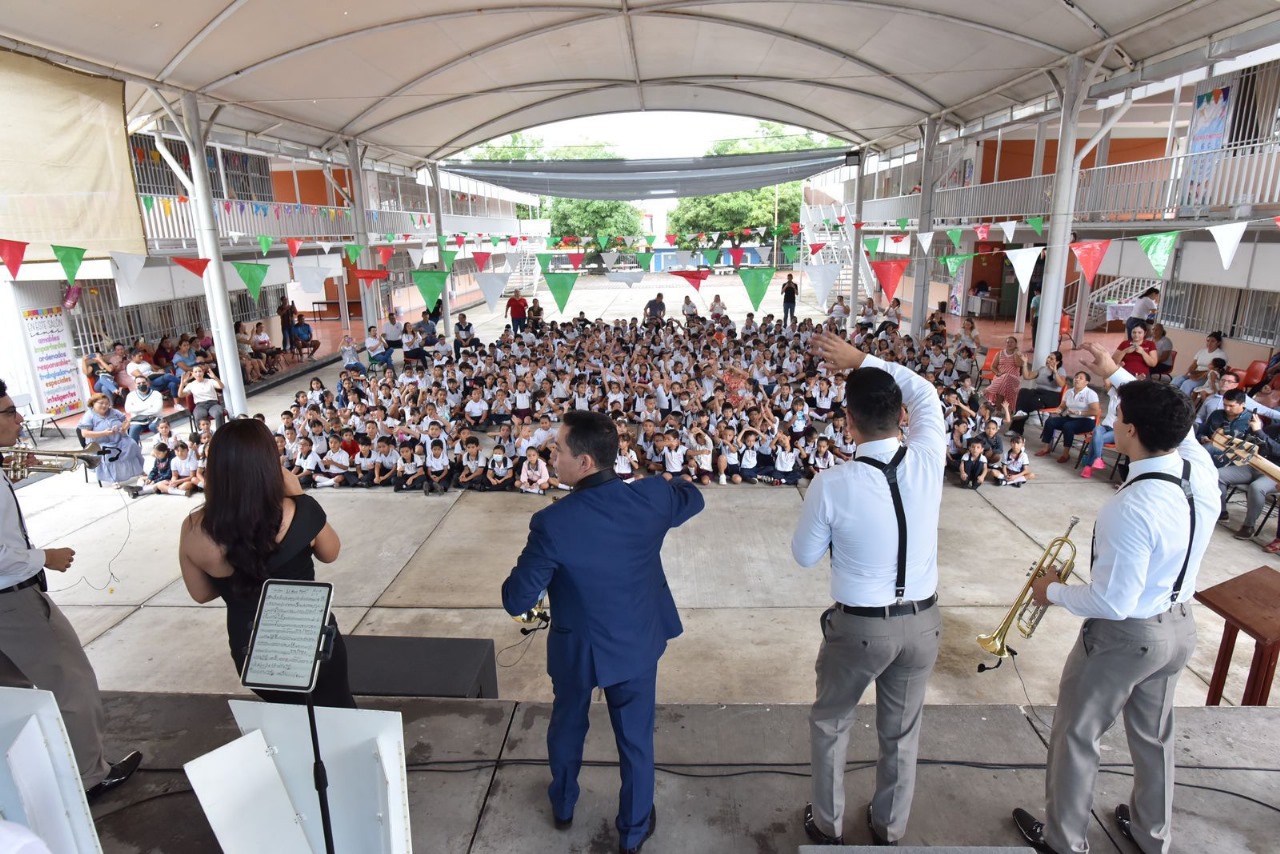 Con el concierto didáctico ‘Por siempre Colorado Naranjo’, presentado por la Orquesta Colorado Naranjo en la escuela primaria Ignacio Manuel Altamirano turno matutino de la ciudad capital, la Muestra Estatal Itinerante de Teatro Música y Danza 2024 – En la Educación Básica, organizada por la Subsecretaría de Cultura del Gobierno del Estado de Colima, reinició recorrido por las primarias de la entidad, para seguir acercando las artes escénicas a la niñez colimense.