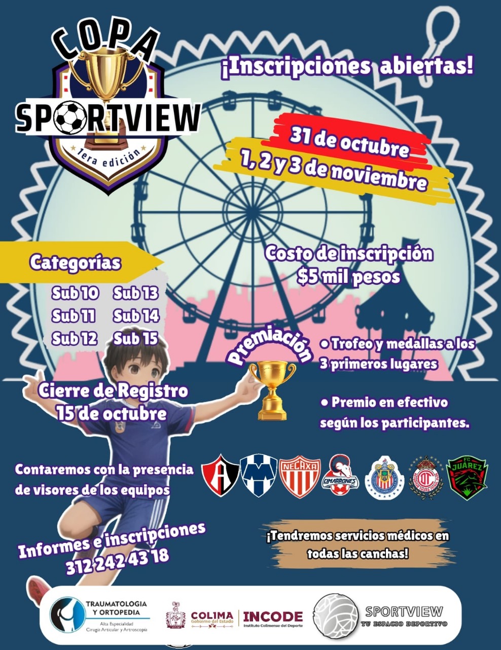 Para más información, llamar al número de celular: 312-242-4318, ahí mismo podrán hacer las inscripciones; el cierre del registro es el martes 15 de octubre. Durante el desarrollo del evento se contará con servicio médico en cada una de los campos en los que se estará jugando.