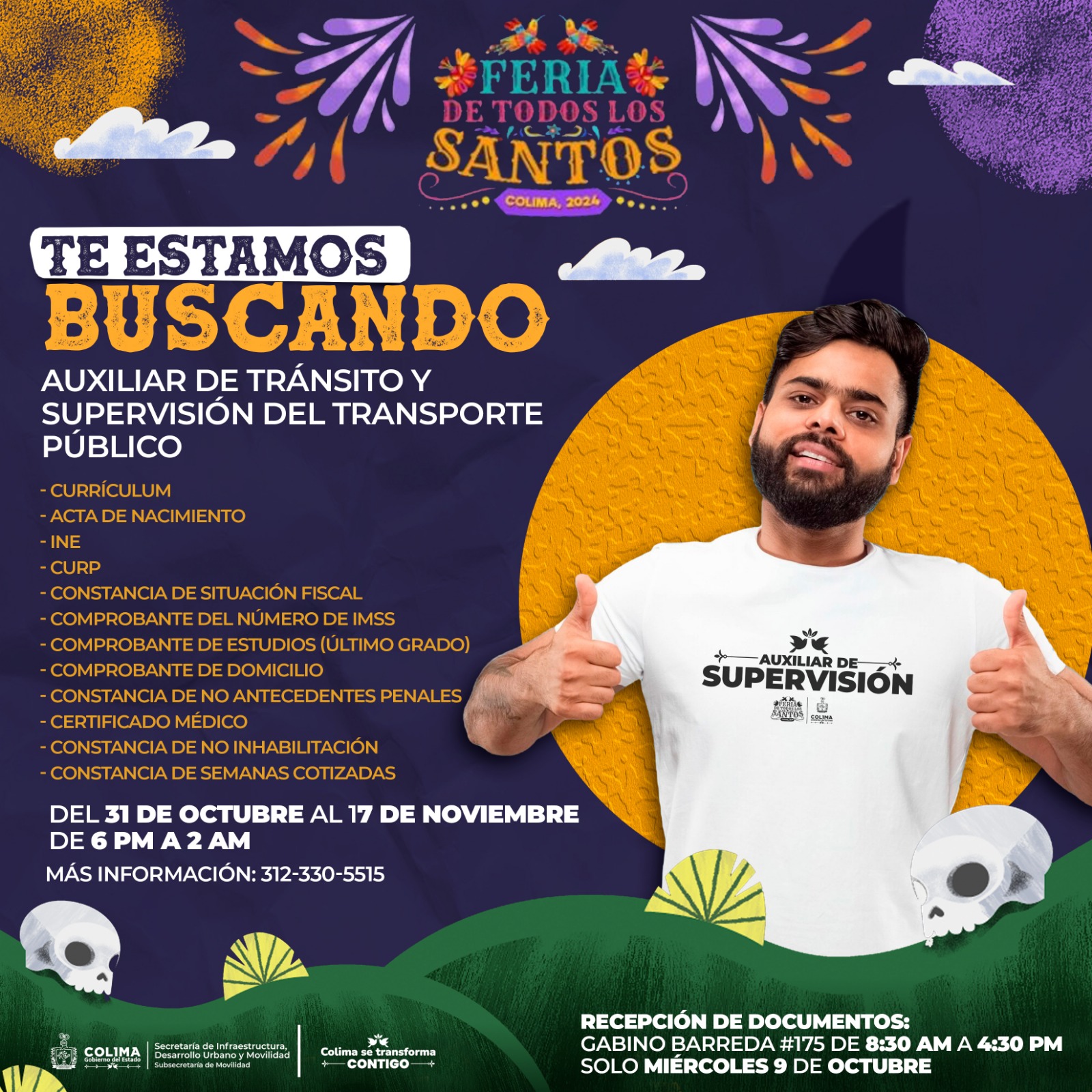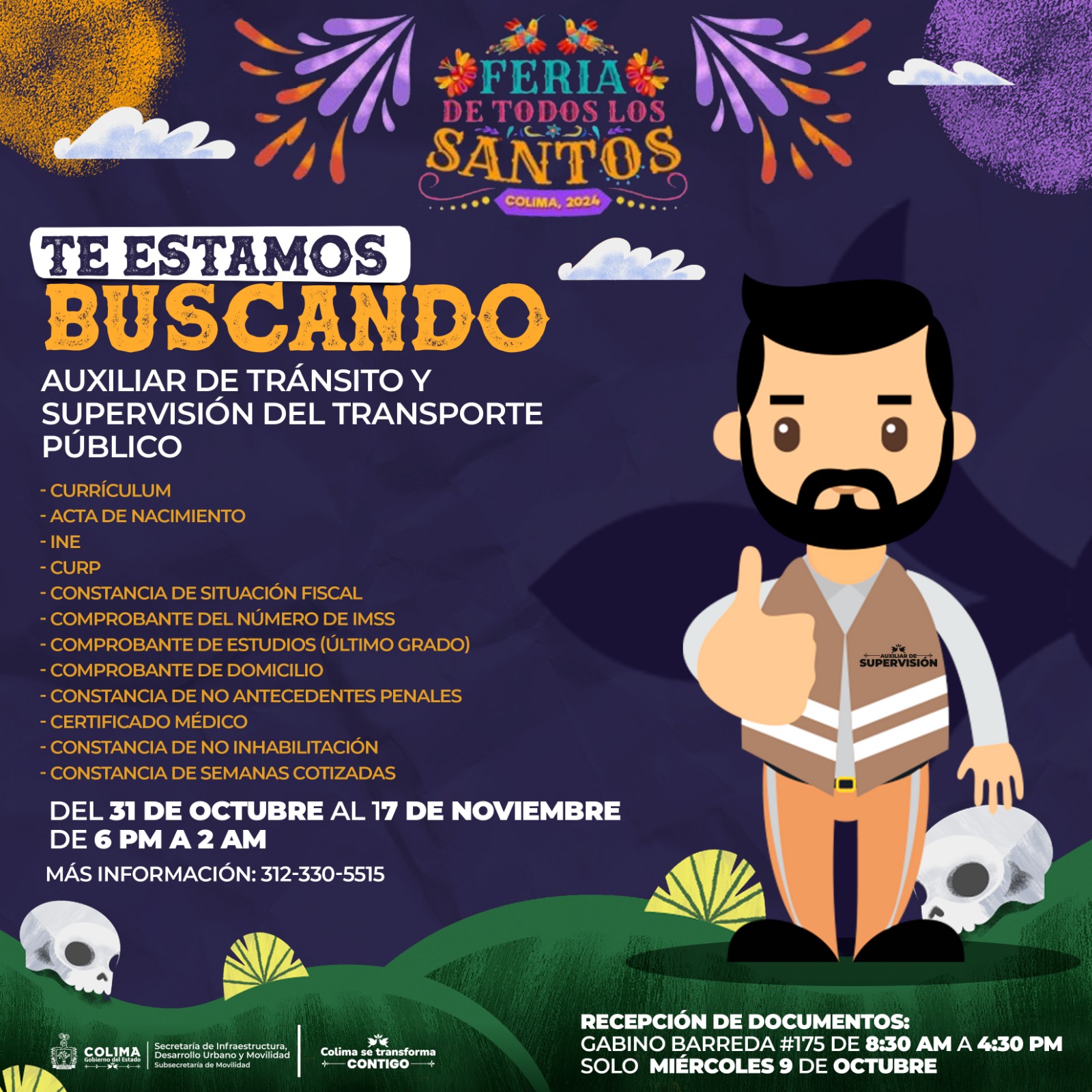 El Gobierno del Estado de Colima, a través de la Subsecretaría de Movilidad (Subsemov), hace un llamado a las personas interesadas en integrarse como auxiliares de supervisión durante la Feria de Todos los Santos Colima 2024.