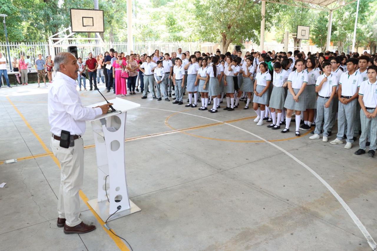 Durante el acto realizado en la escuela secundaria Enrique Corona Morfín T.V., el titular de la dependencia educativa, Adolfo Núñez, reiteró el compromiso del Gobierno de México con la educación de niñas, niños y adolescentes, ya que a través de la Coordinación Nacional de Becas para el Bienestar, se busca fortalecer y garantizar el derecho a una educación inclusiva y equitativa, asegurando que ningún(a) estudiante, sin importar su situación económica, tenga que abandonar sus estudios por falta de recursos.