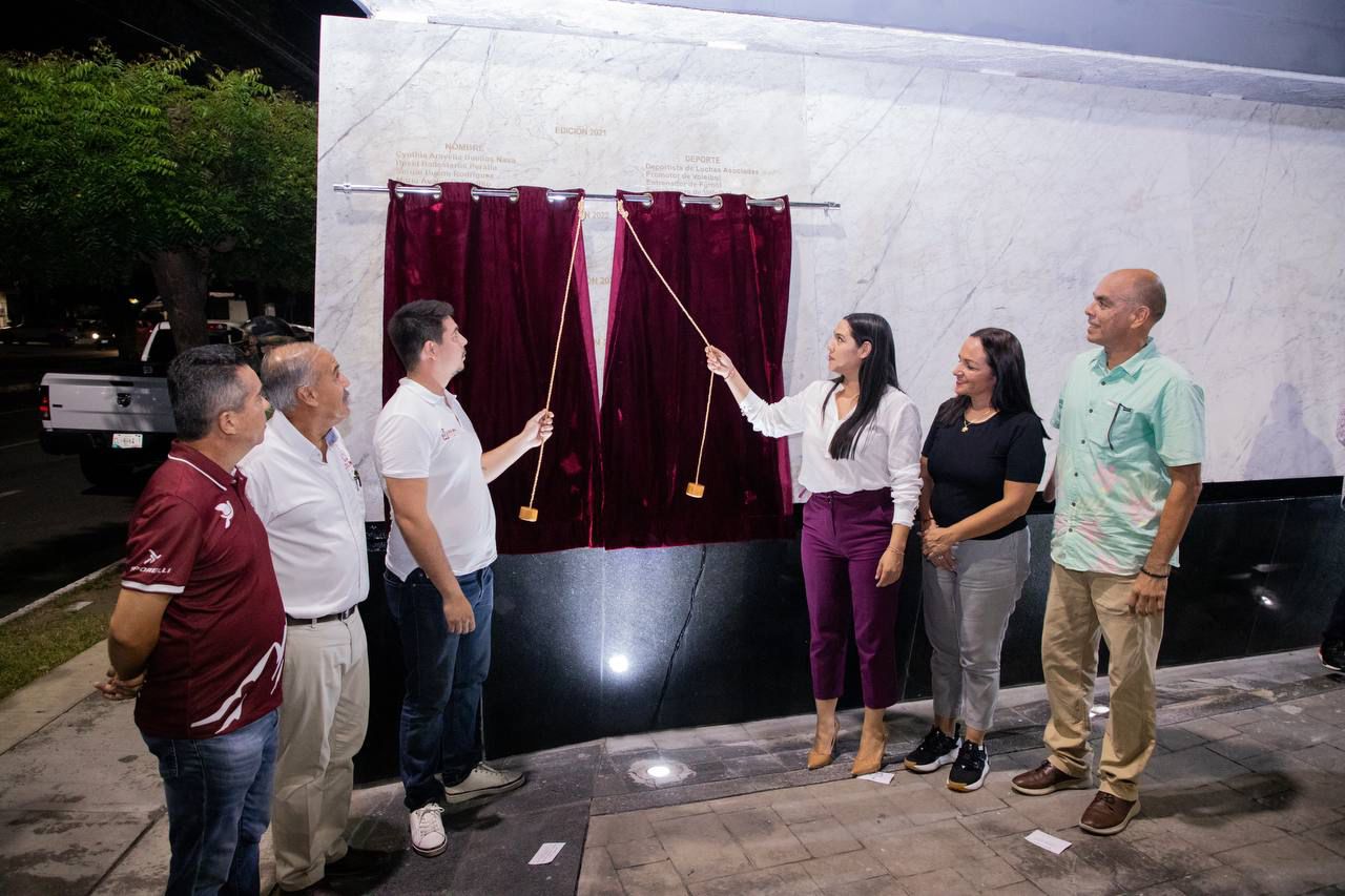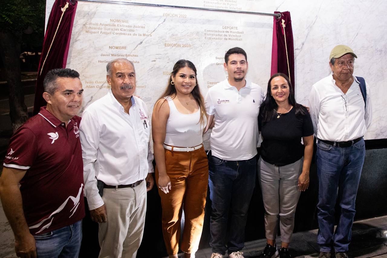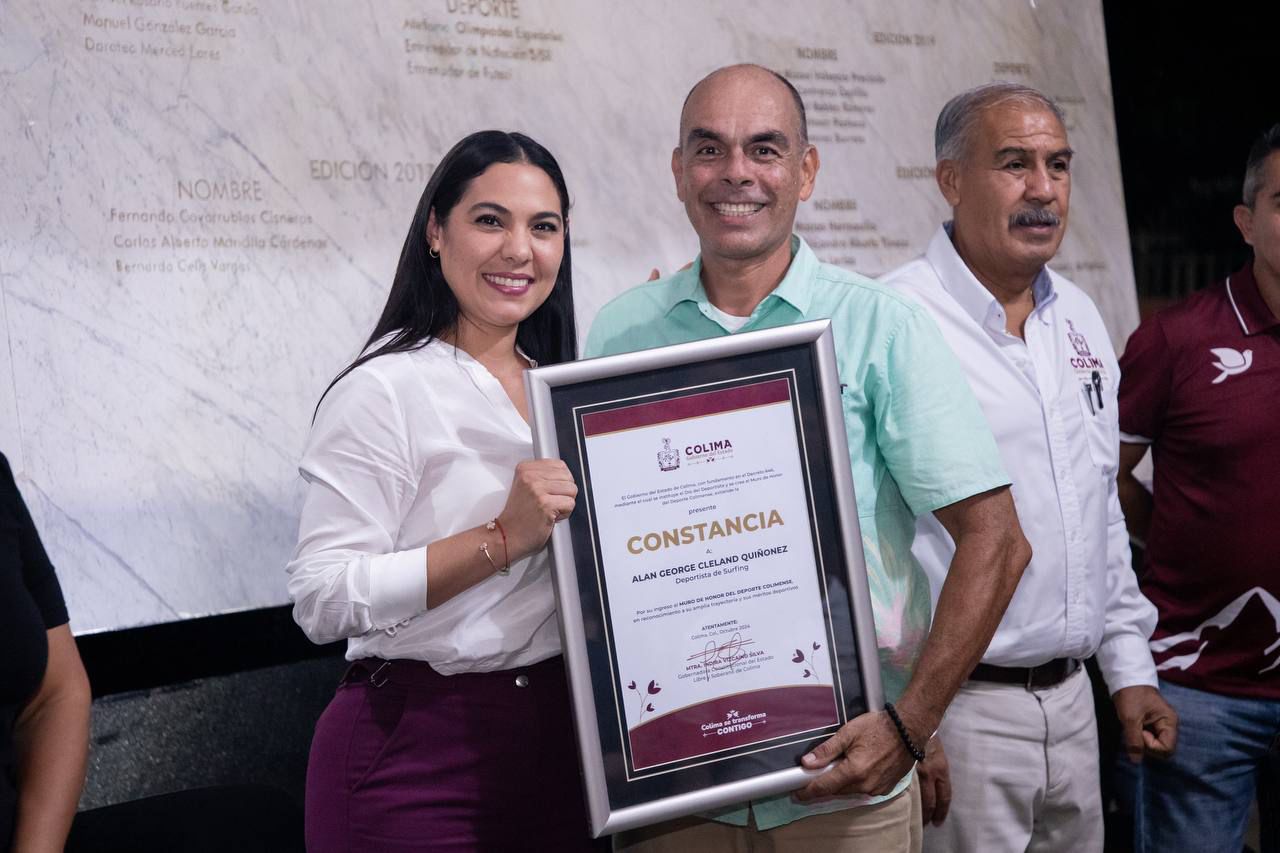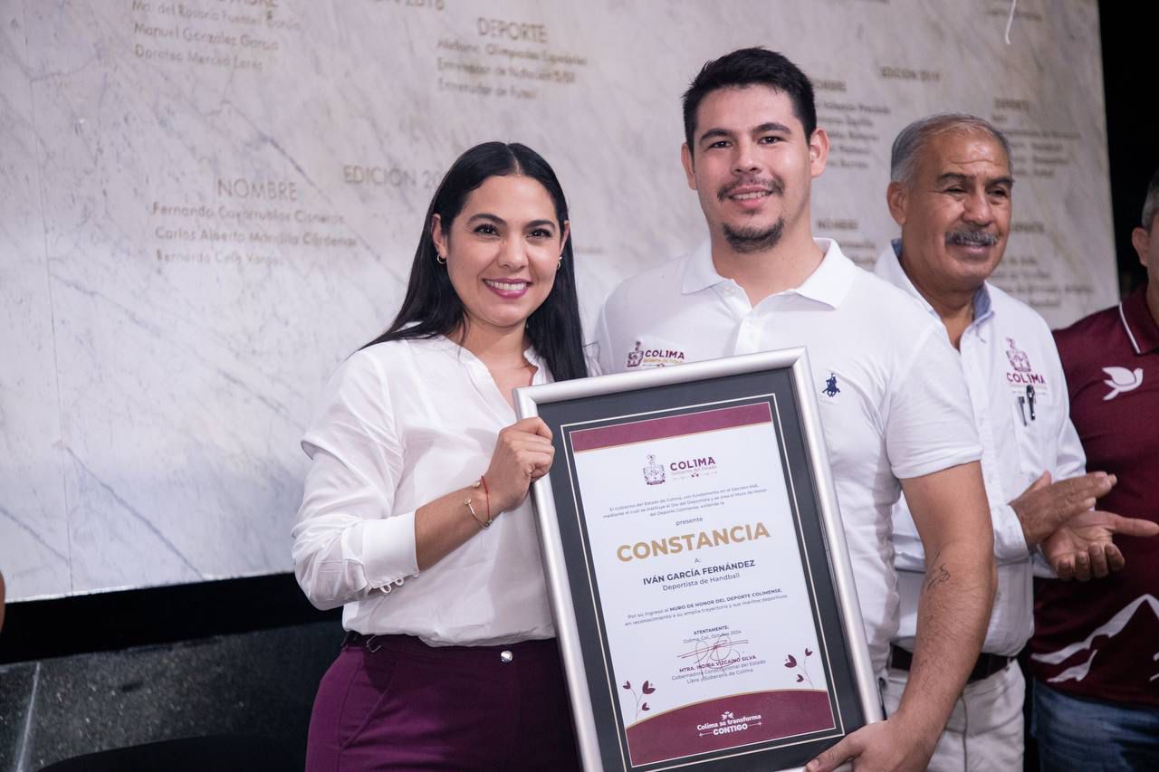 La tarde-noche de este lunes, la gobernadora de Colima, Indira Vizcaíno Silva, develó los nombres de los deportistas Iván García Fernández de handball y Alan George Cleland Quiñonez de surf, que se inscribieron con letras color oro, en el Muro de Honor del Deporte Colimense.