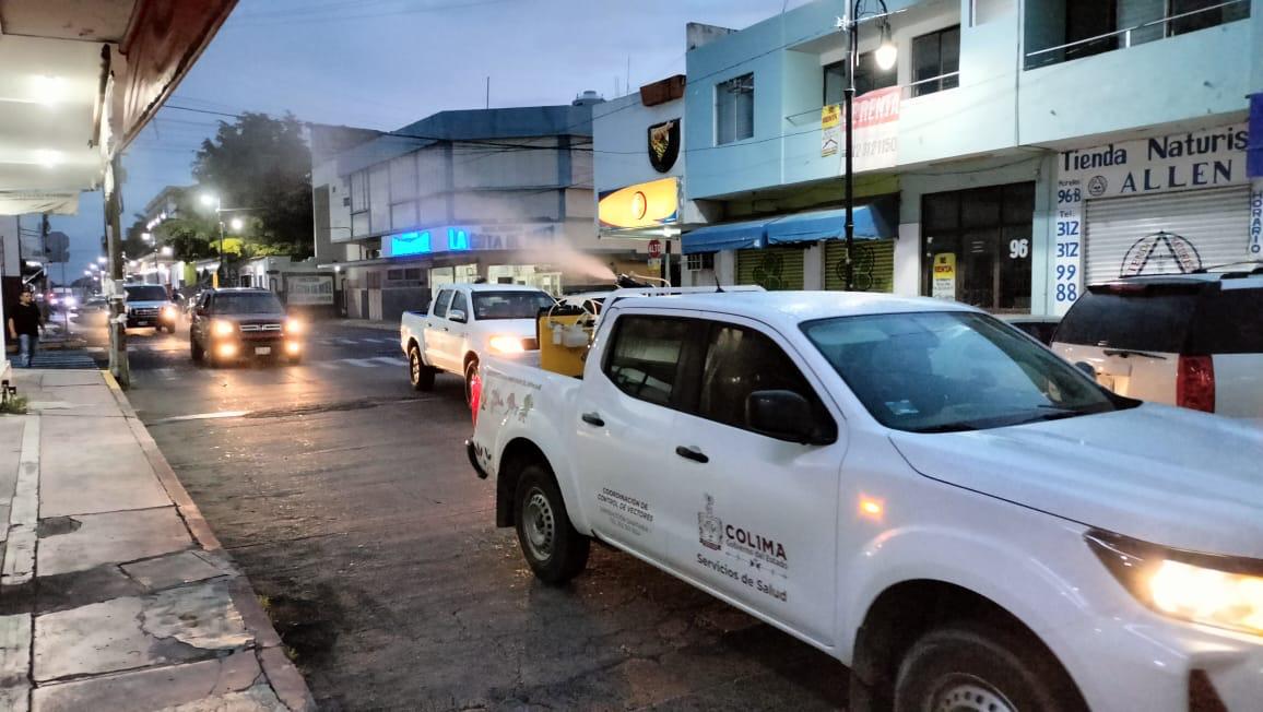 Esta fumigación para disminuir la densidad del mosco transmisor y el riesgo de infectar a la población se hará este viernes en Cofradía de Suchitlán, La Caja y zona centro de Comala, así como en las colonias Mirador de la Cumbre 1 y 3, del municipio de Colima.