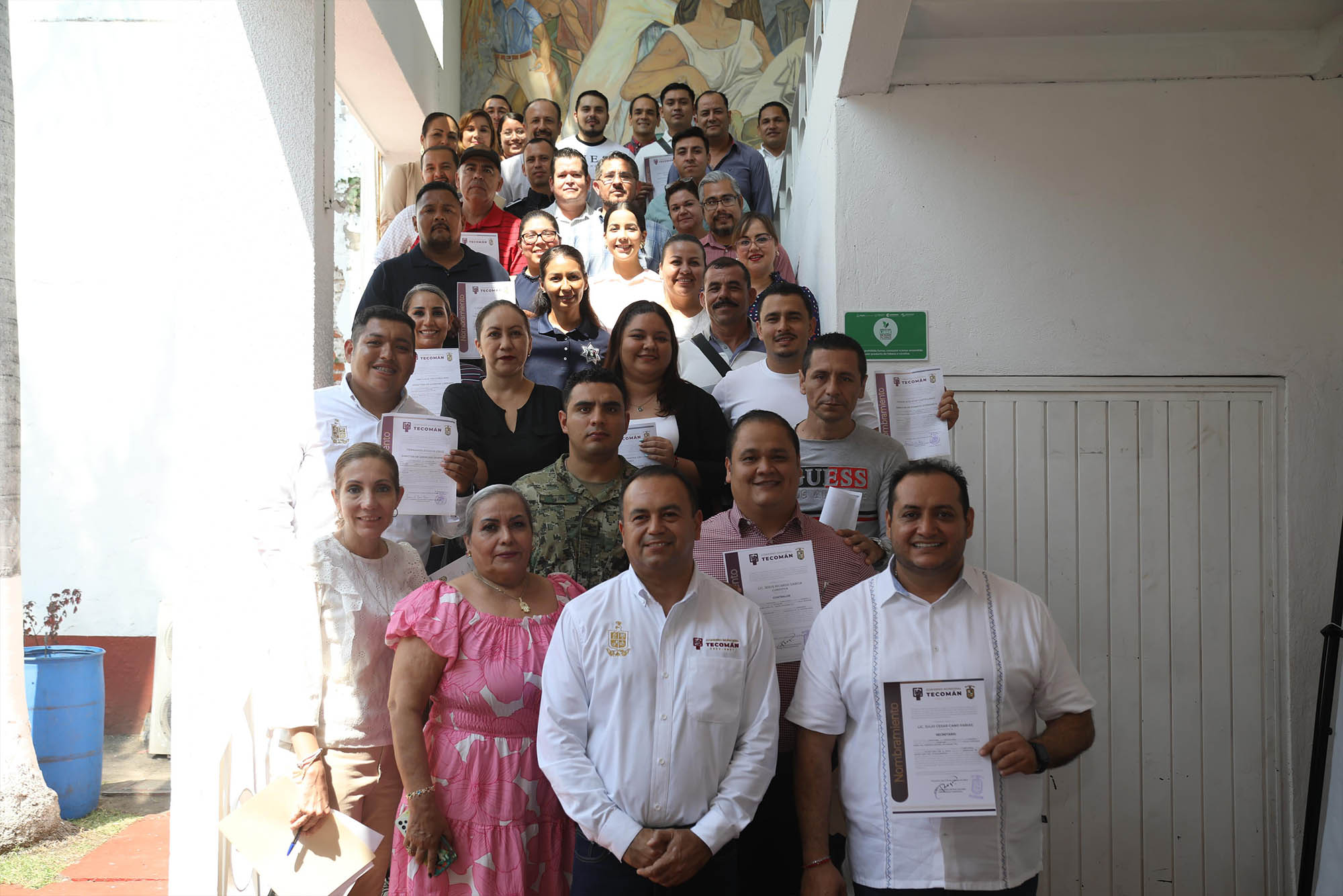Este viernes, el presidente municipal de Tecomán, Armando Reyna Magaña, llevó a cabo la entrega de nombramientos a los nuevos funcionarios que estarán al frente de las diferentes direcciones y funcionarios de primer nivel que conforman el H. Ayuntamiento.