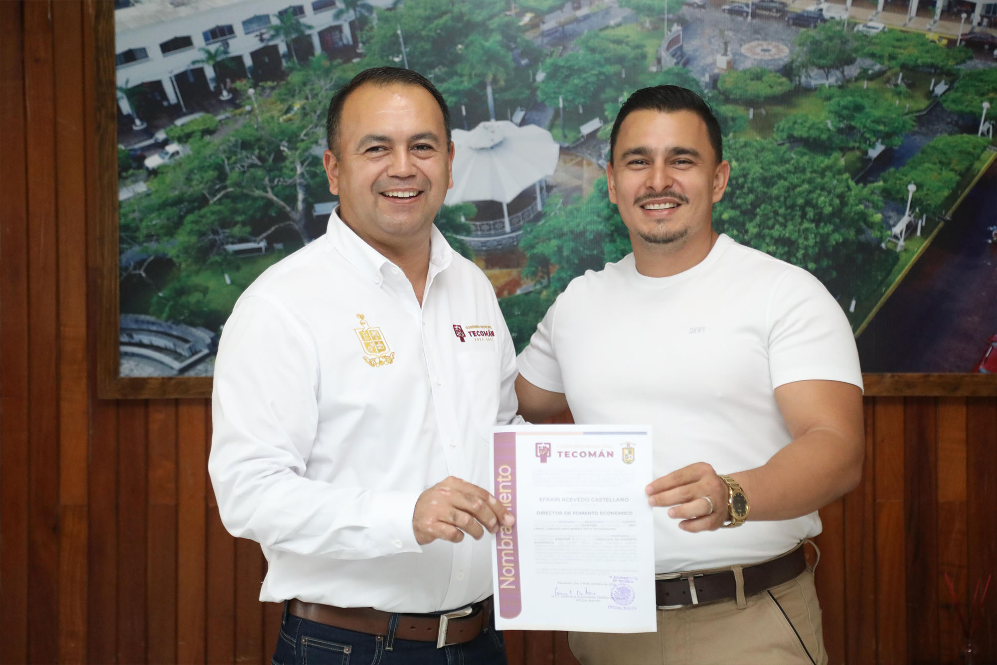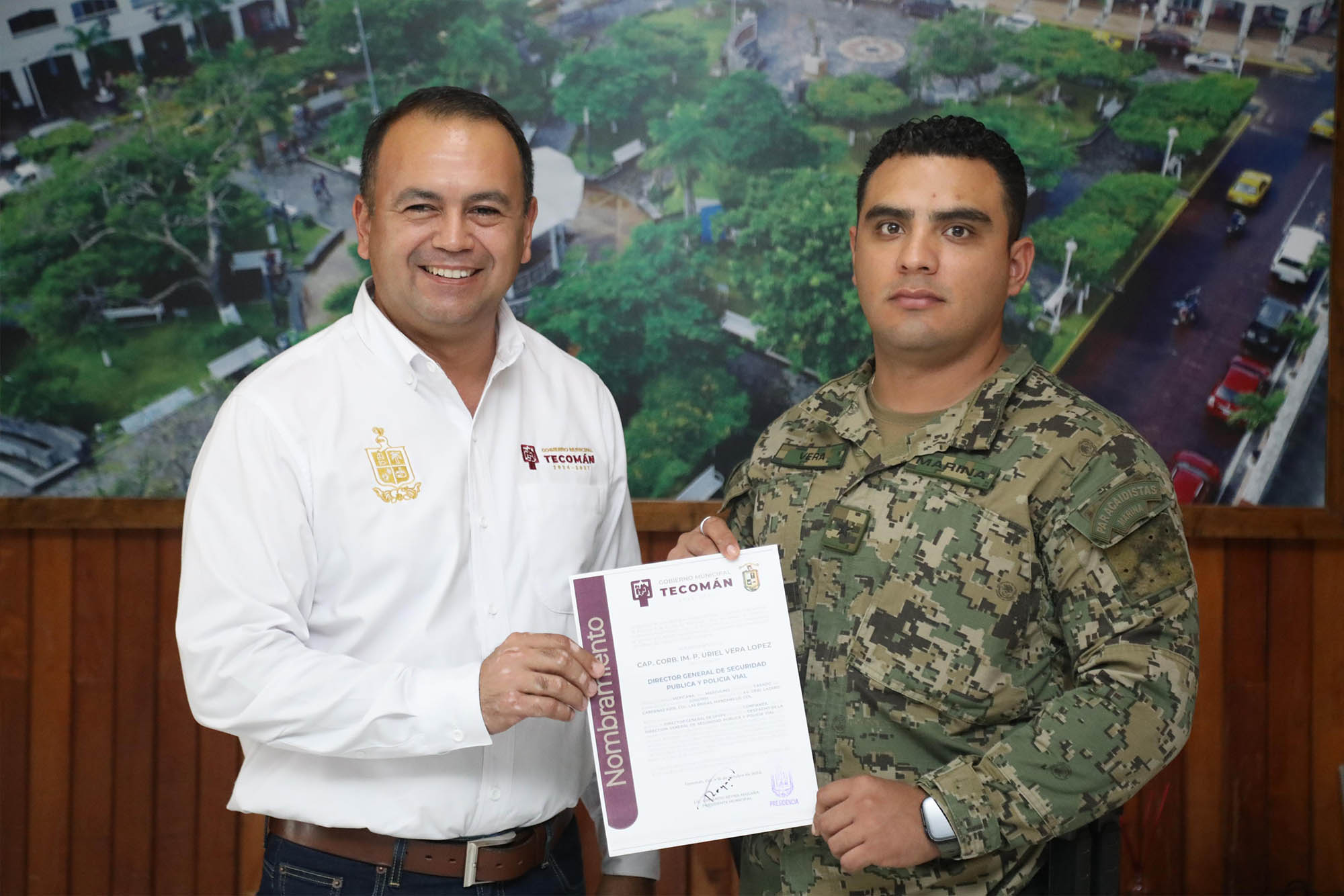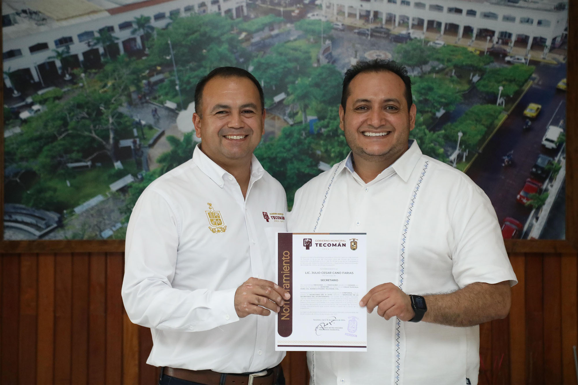 Durante el acto, el alcalde entregó nombramientos a la Oficial Mayor CP. Gabriela Alejandra Torres Alcocer; a la Tesorera municipal CP. Andrea Juárez Cruz; al Contralor Lic. Jesús Ricardo Córdova García; así como al Secretario del Ayuntamiento Lic. Julio César Cano Farías y al Director General de Seguridad Pública y Vialidad, Capitán Uriel Vera López.