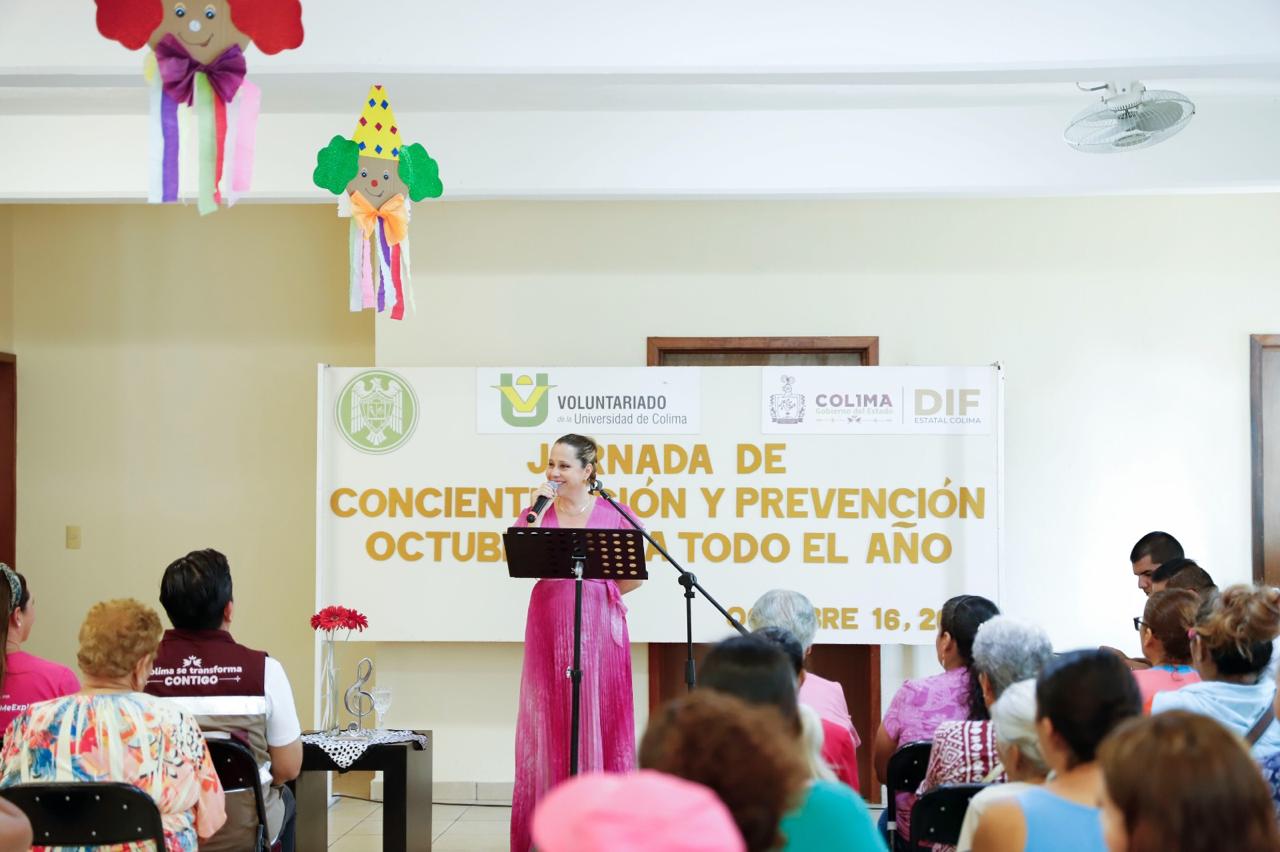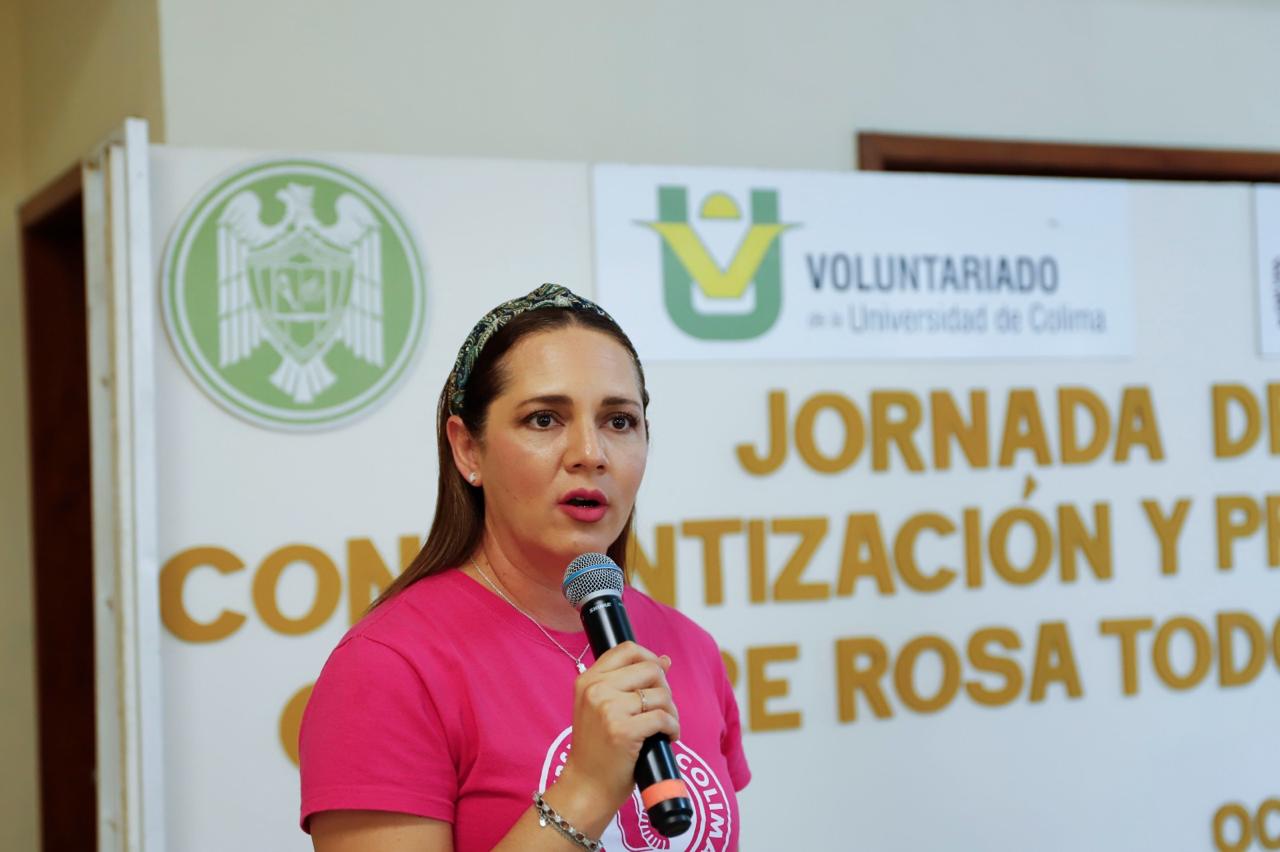 Dentro de la Semana Universitaria: “La lucha contra el cáncer de mama, octubre rosa todo el año”, organizada por la Universidad de Colima y su Voluntariado, este miércoles 16 se realizó una actividad alusiva al tema en el Centro de Desarrollo Comunitario (CEDECO) Mirador de la Cumbre II.