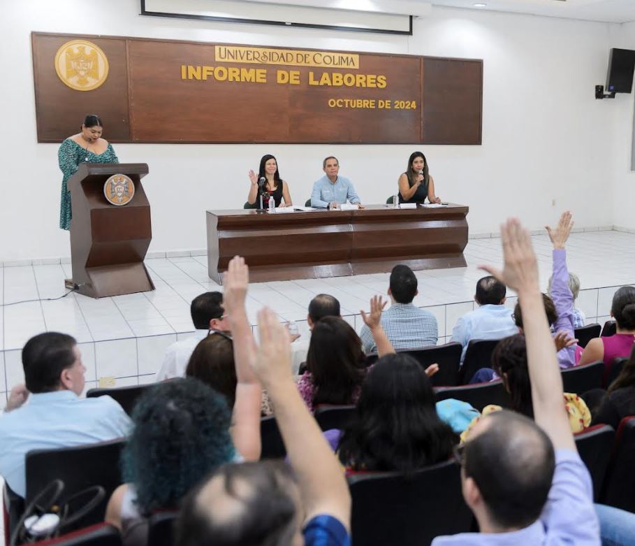 En un ambiente festivo y solidario, se rindió y aprobó el informe de labores de la Facultad de Letras y Comunicación (Falcom), a cargo de la directora Krishna Naranjo Zavala, este viernes en el auditorio de Enfermería de la Universidad de Colima, campus central.