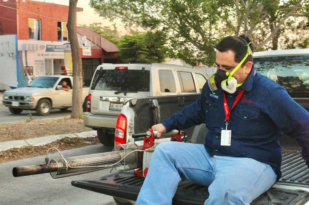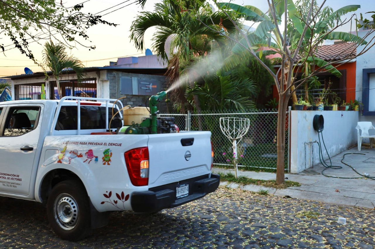 Esta fumigación para disminuir la densidad del mosco transmisor y el riesgo de infectar a la población se realiza este lunes en Quesería (Cuauhtémoc); y las colonias Lázaro Cárdenas, El Pelillo, Valle del Sol, Independencia, Ferrocarril, Emiliano Zapata, Campanario, Ejido, Gregorio Torres Quintero, Lindavista y zona centro de Armería.