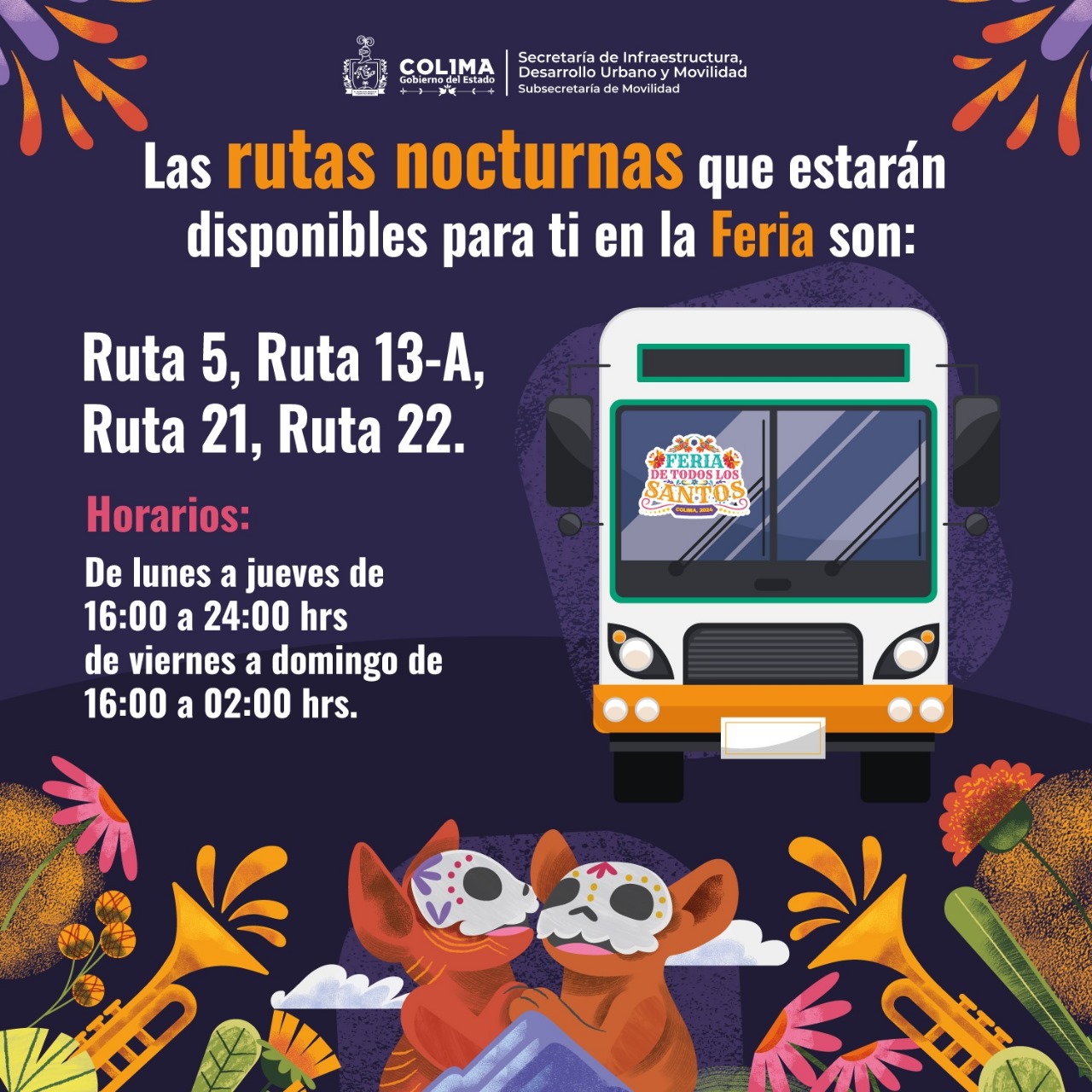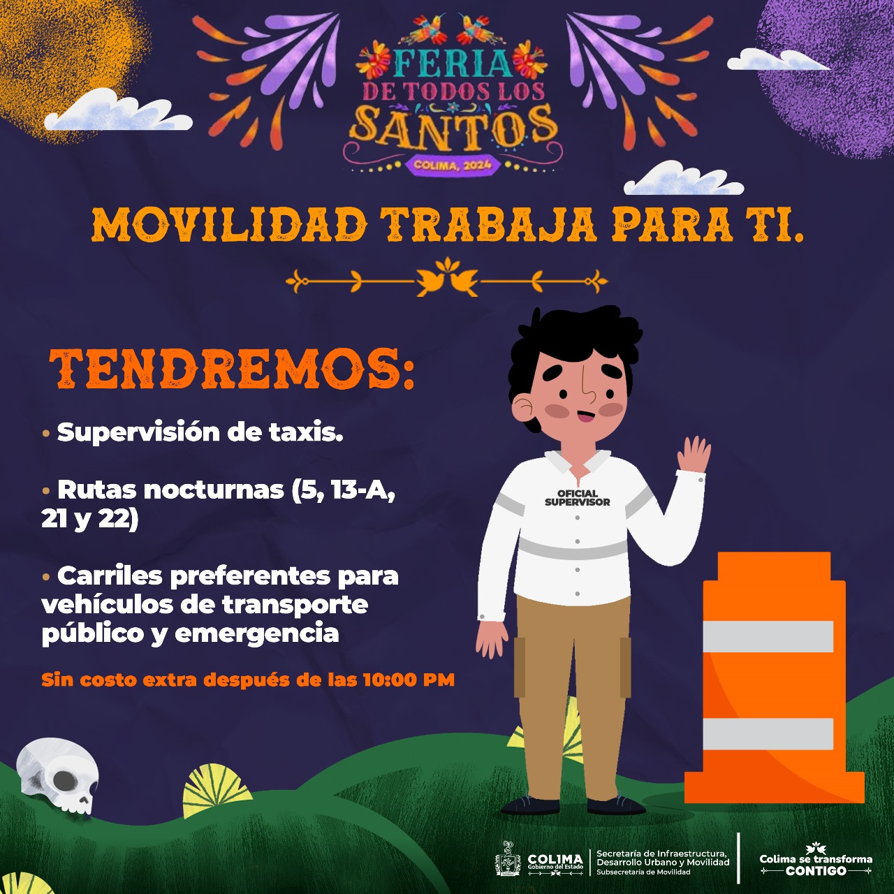 El Gobierno del Estado de Colima, a través de la Subsecretaría de Movilidad, invita a la población para asistir a la Feria de Todos los Santos 2024 utilizando el transporte público.