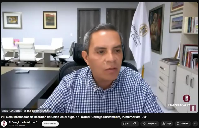 En ceremonia virtual, este miércoles Christian Jorge Torres Ortiz Zermeño, rector de la Universidad de Colima, inauguró las actividades del octavo Seminario Internacional “Desafíos de China en el Siglo XXI”, que en está ocasión rinde homenaje al destacado investigador Romer Cornejo Bustamante. El seminario, organizado por la Universidad de Colima y el Colegio de México, se llevará a cabo los días 30 y 31 de octubre y contará con conferencias, mesas de trabajo y presentaciones de libros y revistas.