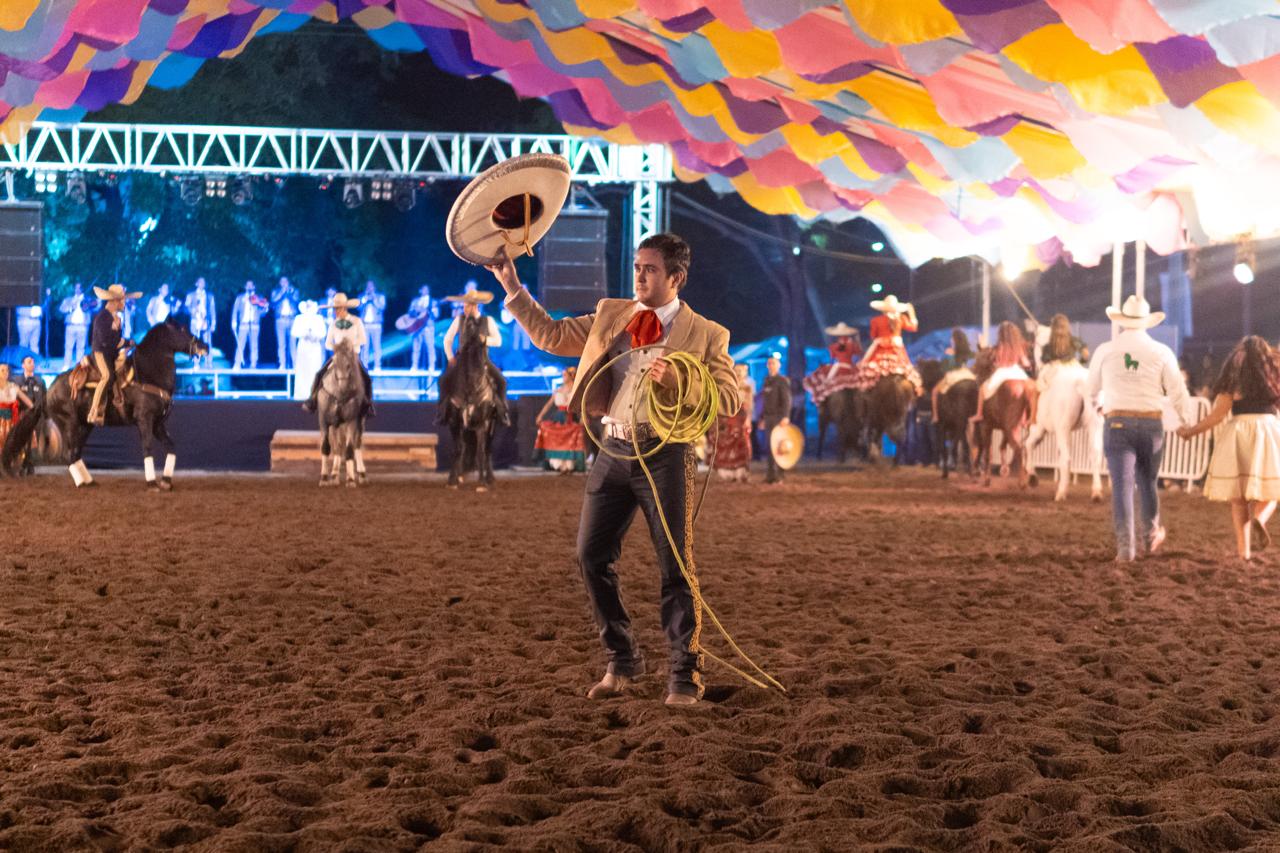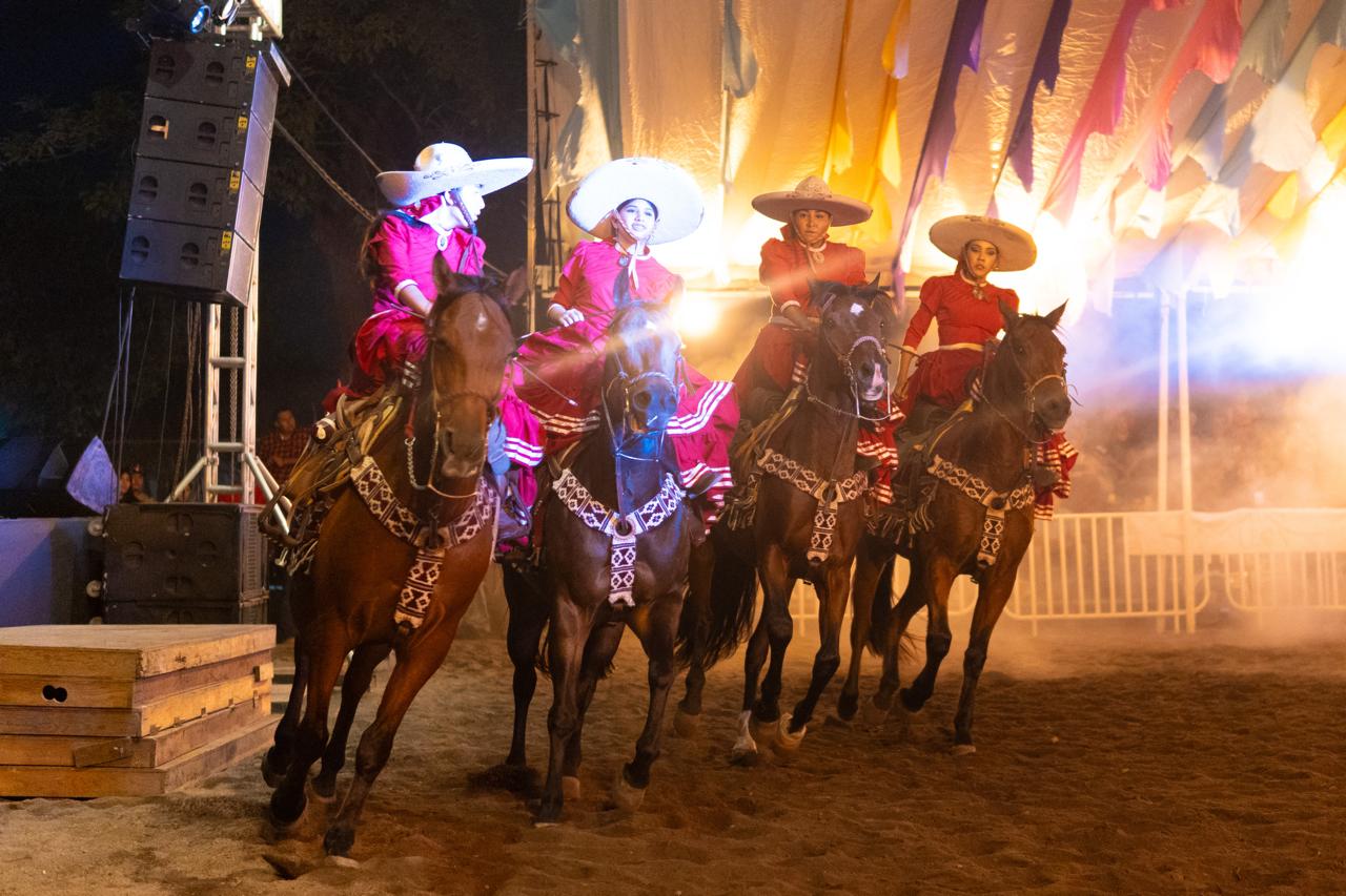 ‘Conquistador’ es el programa presentado con bailarines, jinetes, damas charras, pequeñas a pelo de caballo, charro con floreo de salón, baile áereo y mariachi, además de un grupo de son jarocho que prendió a todo el público.