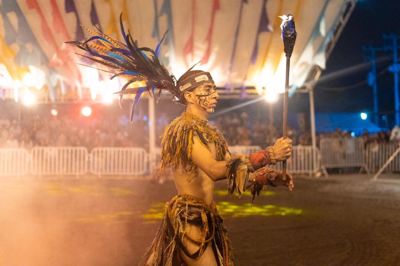 El programa de ‘Conquistador’ abre con reminiscencias de nuestros ancestros adorando al fuego, y el momento en que se encuentran y conocen a los caballos, donde el Ballet Ecuestre de la Feria de Todos los Santos interactúa con las pequeñas de Rancho Ardenés, montadas a pelo, ataviadas a la usanza indígena y se mezclan con los bailarines.