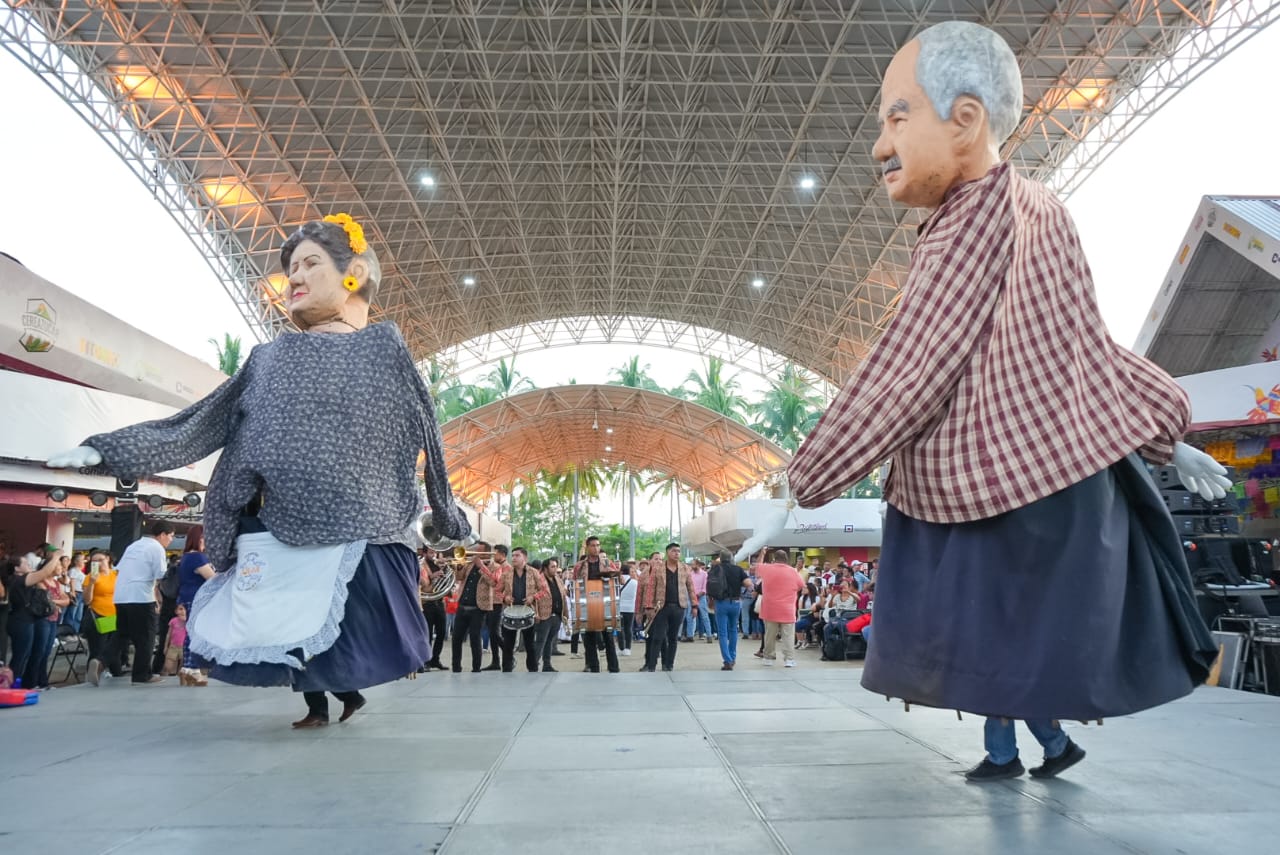 Con el Zarzo y los Mojigangos al frente en la caminata de la entrada principal de la Feria de Todos los Santos hasta el Teatro del Pueblo “Emigdio Salgado Mares”, este jueves la Presidenta Tey Gutiérrez encabezó el Convite ofrecido por el municipio de Villa de Álvarez.
