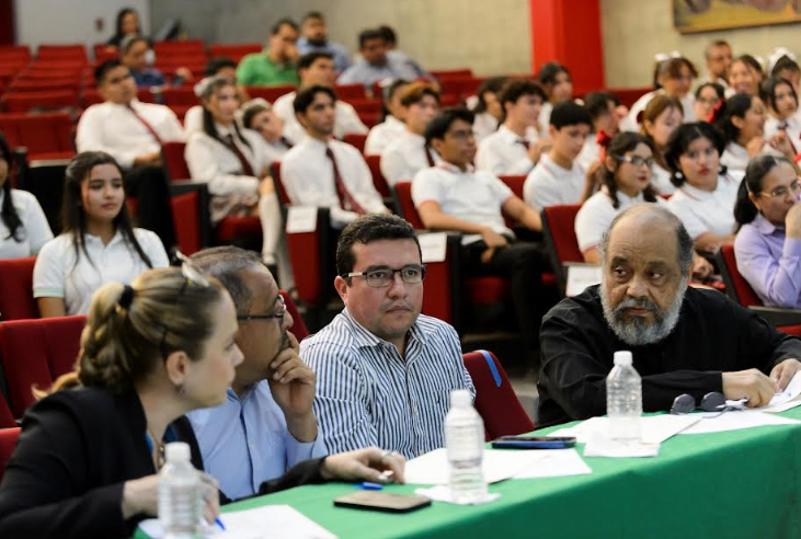 En el presídium también estuvieron Joel Nino, secretario general de la UdeC; Susana Aurelia Preciado Jiménez, coordinadora general de Docencia; y Camilo García Morales, presidente de la FEC.