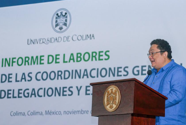 Como parte de la jornada de rendición de cuentas celebrada este fin de semana, las cinco delegaciones universitarias presentaron su informe en voz de José Francisco Ventura Ramírez, delegado del campus Coquimatlán, en acto realizado en el Paraninfo y que estuvo encabezado por el rector Christian Jorge Torres Ortiz Zermeño.