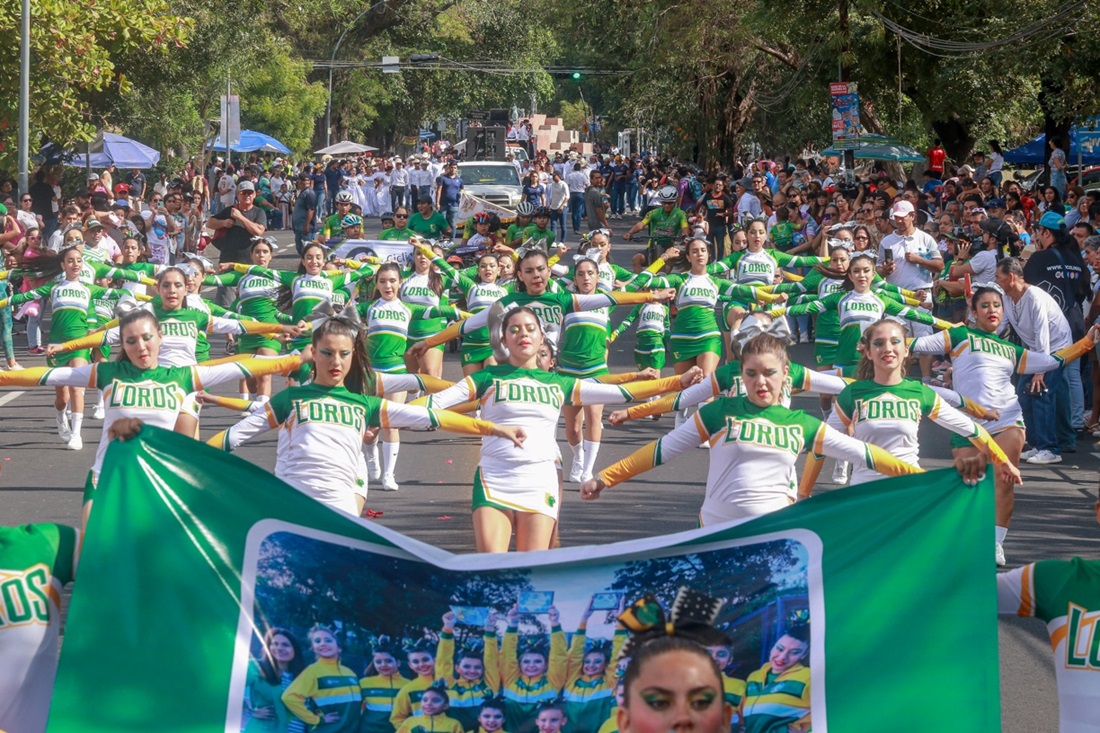 Las porristas universitarias y las mascotas oficiales, el Loro y la Lora, añadieron energía y alegría al desfile, reafirmando el compromiso de la Universidad con la educación integral.