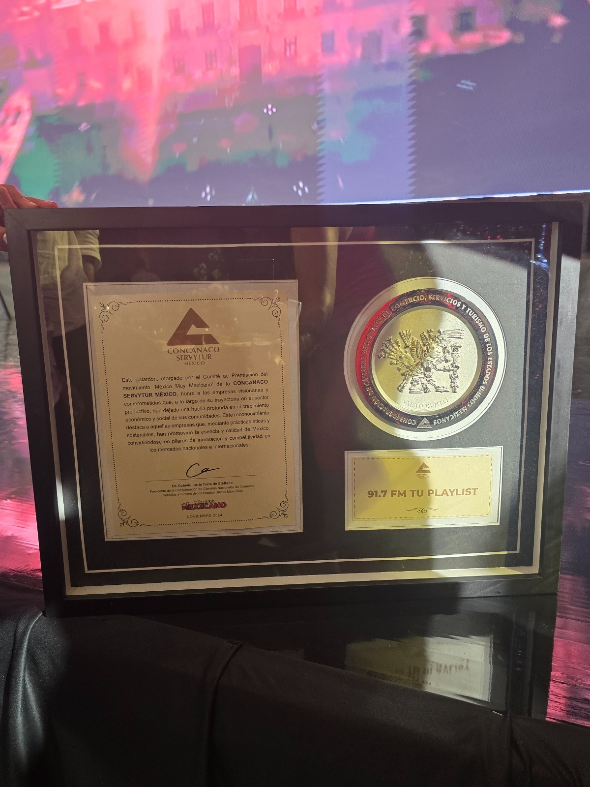 Concanaco Nacional galardona a 91.7FM Tu Playlist por ser una empresa Muy Mexicana