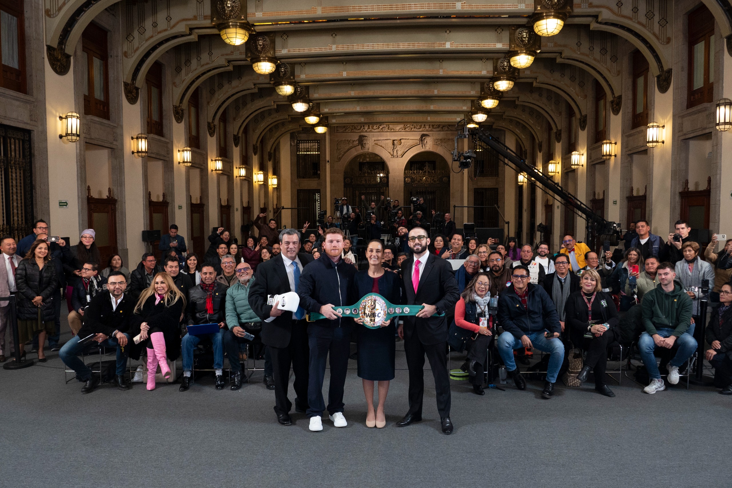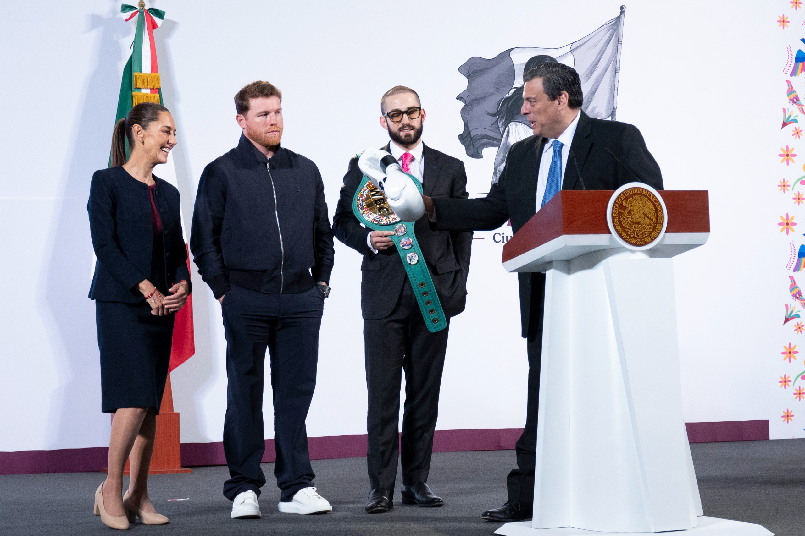 “A nombre de toda la comunidad del boxeo, de México y del mundo, felicitarla señora Presidenta, porque usted es la campeona de las mujeres, la campeona del mundo, la campeona de la paz”, resaltó.