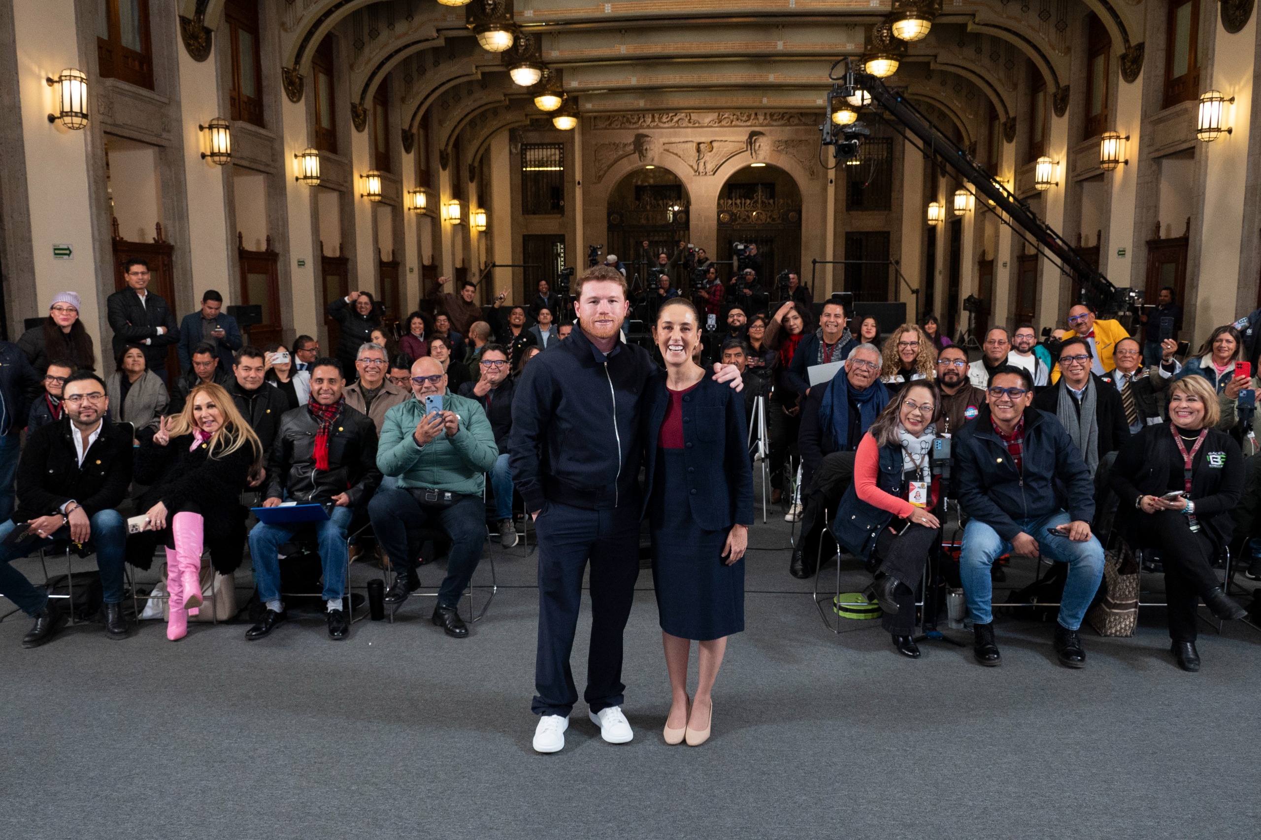 Ante los medios de comunicación, Saúl “Canelo” Álvarez extendió sus felicitaciones y agradecimiento a la Presidenta de México; además, aprovechó para invitar a las y los jóvenes a practicar algún deporte, pues destacó que esto puede dar acceso a una mejor calidad de vida.