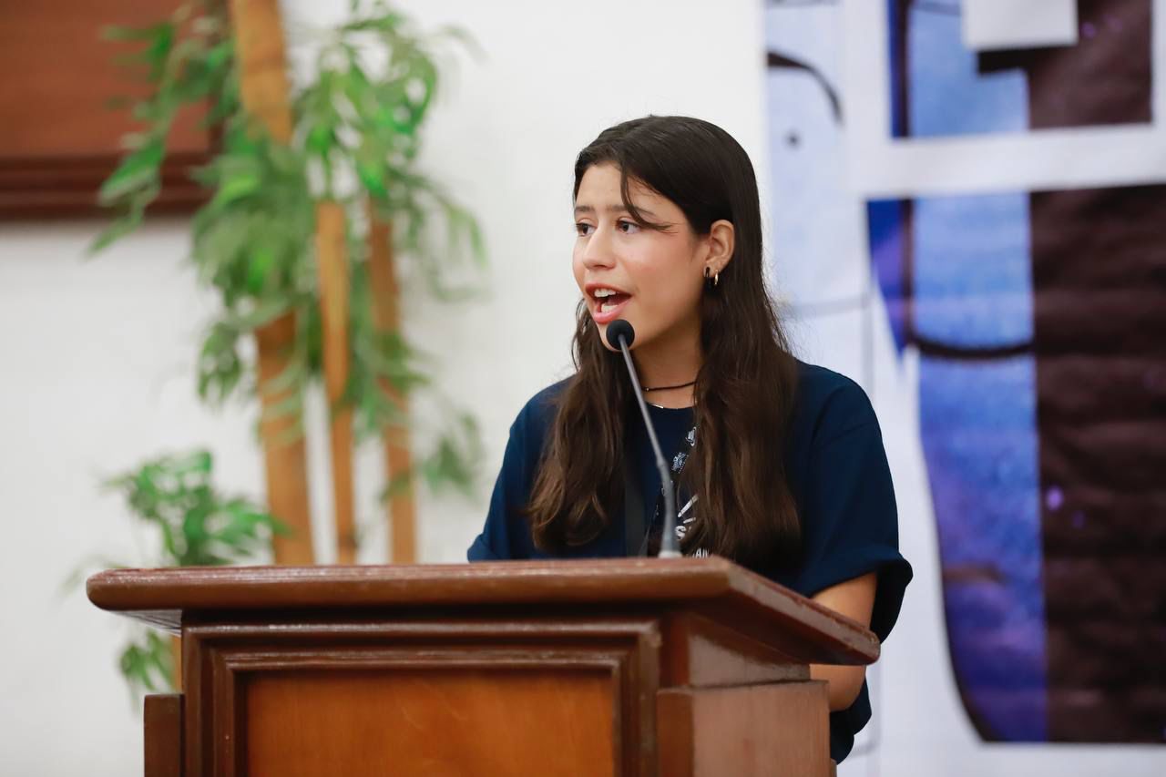 Sofía Padilla Beltrán, presidenta de la Sociedad de Alumnos y coordinadora general de Selider Manzanillo, agradeció a la gobernadora Indira Vizcaíno y a la presidenta municipal, Rosa María Bayardo Cabrera, por hacer un espacio en su ocupada agenda “para compartir este momento con chicas y chicos que queremos formar parte del Colima y el Manzanillo del mañana”.