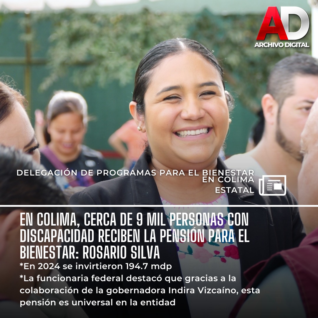 Con motivo del Día Internacional de las Personas con Discapacidad que se conmemora el 3 de diciembre, la delegada de Programas para el Bienestar en Colima, Rosario Silva Verduzco, dio a conocer que, en la entidad, 8 mil 813 personas de 0 a 64 años con alguna discapacidad permanente son derechohabientes de la Pensión para el Bienestar, misma que en 2024 tuvo una inversión de 194 millones 742 mil pesos.