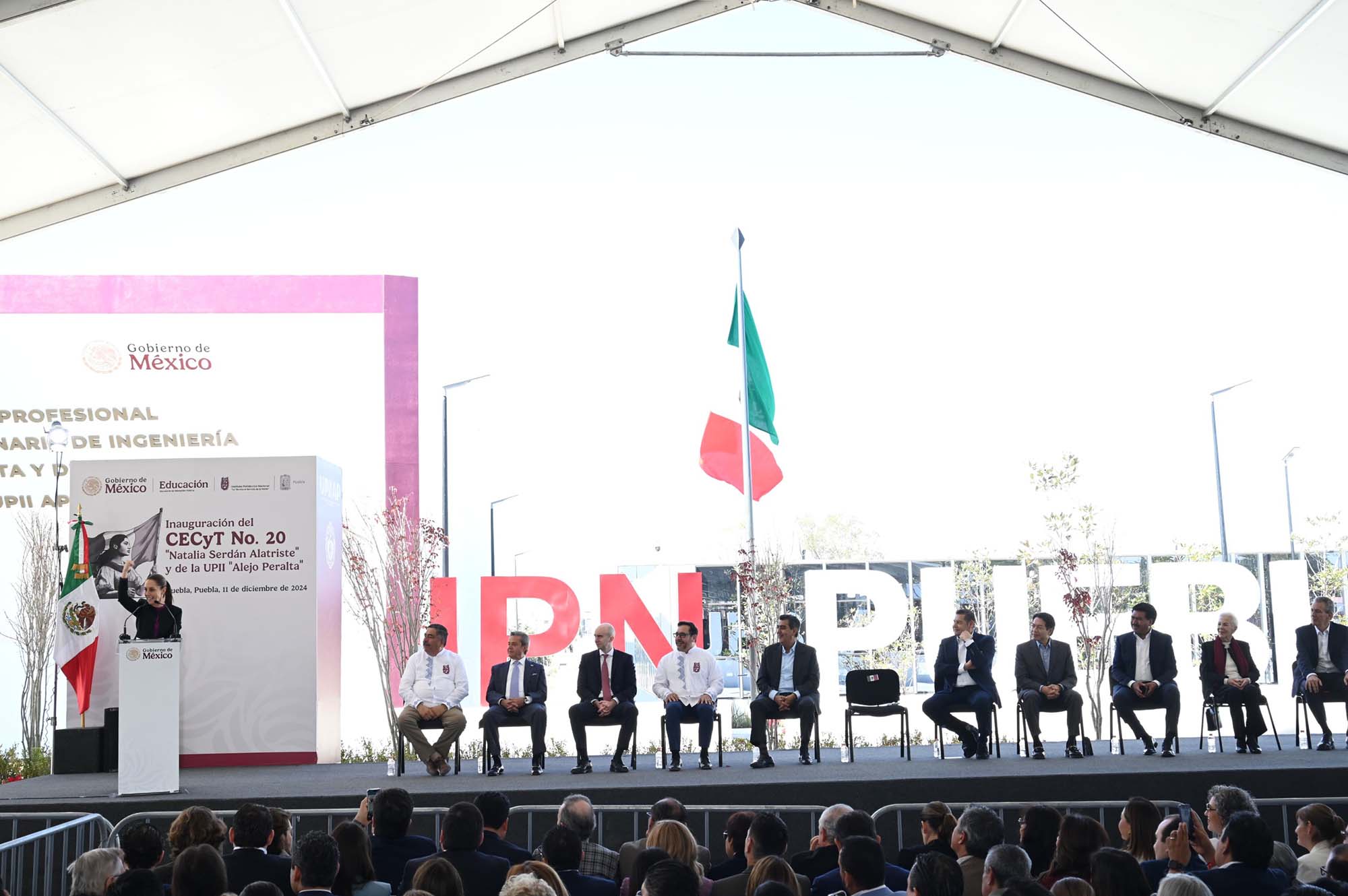 Puebla de Zaragoza, Puebla a 11 de diciembre de 2024.- La Presidenta de México, Claudia Sheinbaum Pardo, presidió la inauguración del Centro de Estudios Científicos y Tecnológicos (CECyT) No. 20 “Natalia Serdán Alatriste” de educación media superior y la Unidad Profesional Interdisciplinaria de Ingeniería (UPII) “Alejo Peralta” de educación superior del Instituto Politécnico Nacional (IPN), donde destacó que el derecho a la educación es un logro del pueblo.