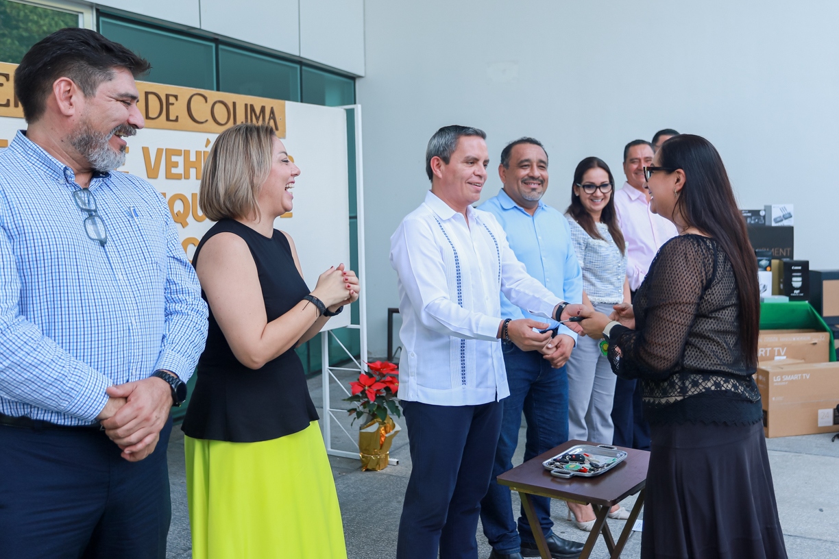 Con una inversión de 3 millones 639 mil 038 pesos, este lunes Christian Jorge Torres Ortiz Zermeño, rector de la Universidad de Colima, entregó 4 vehículos oficiales, uno para la Dirección General de Servicios Universitarios, dos para la Delegación Tecomán y uno más para la Delegación Coquimatlán. También equipo de cómputo, mobiliario y equipo audiovisual para el Archivo de Concentración y las direcciones generales de Prensa y de Televisión Universitaria.