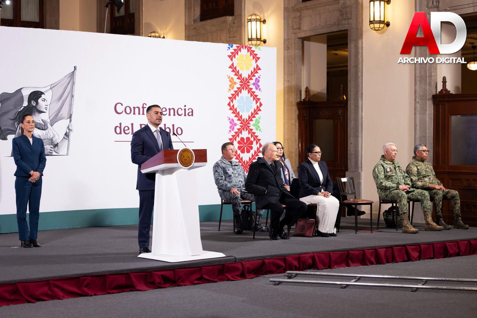 En la conferencia: “Las mañaneras del pueblo”, acompañaron a la Presidenta de México, el fiscal general de la República, Alejandro Gertz Manero; el secretario de la Defensa Nacional, general Ricardo Trevilla Trejo; el secretario de Marina, almirante Raymundo Pedro Morales Ángeles; el comandante de la Guardia Nacional, general Hernán Cortés Hernández, y la subsecretaria de Prevención del Delito, Esthela Damián Peralta.