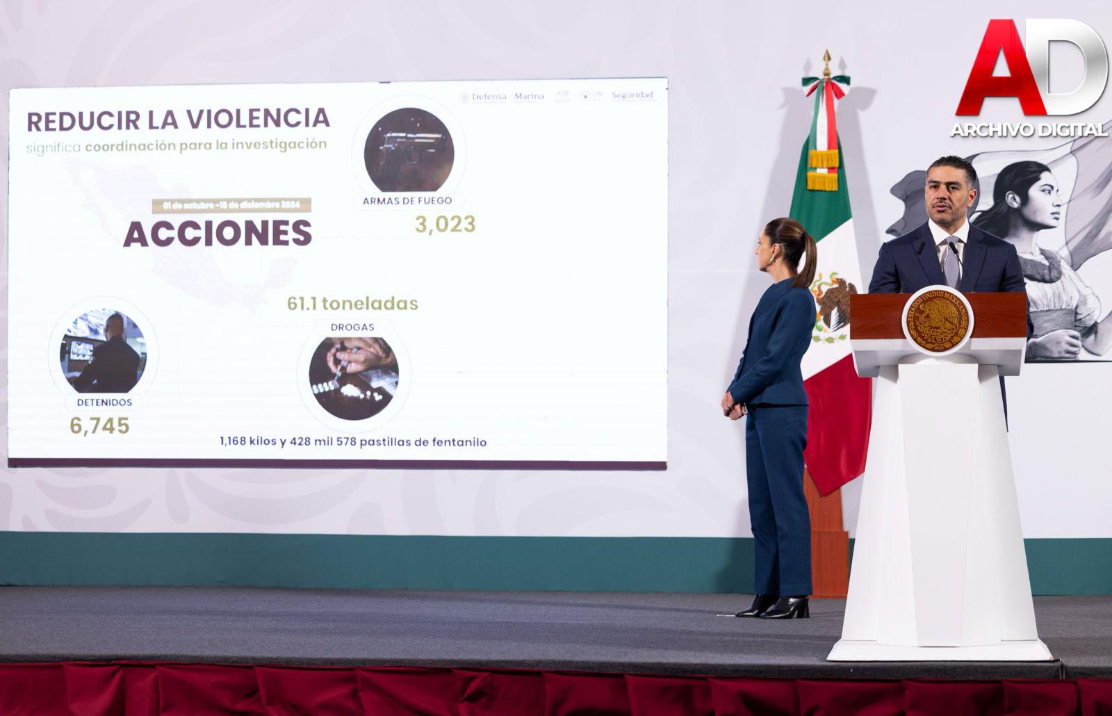 Detalló que por instrucciones de la Presidenta de México incrementaron las acciones para recuperar la paz y tranquilidad en Sinaloa, por lo que del 3 de diciembre a la fecha, se han realizado 21 acciones operativas logrando aseguramientos históricos de droga, incluyendo el de fentanilo y la detención de 29 generadores de violencia.