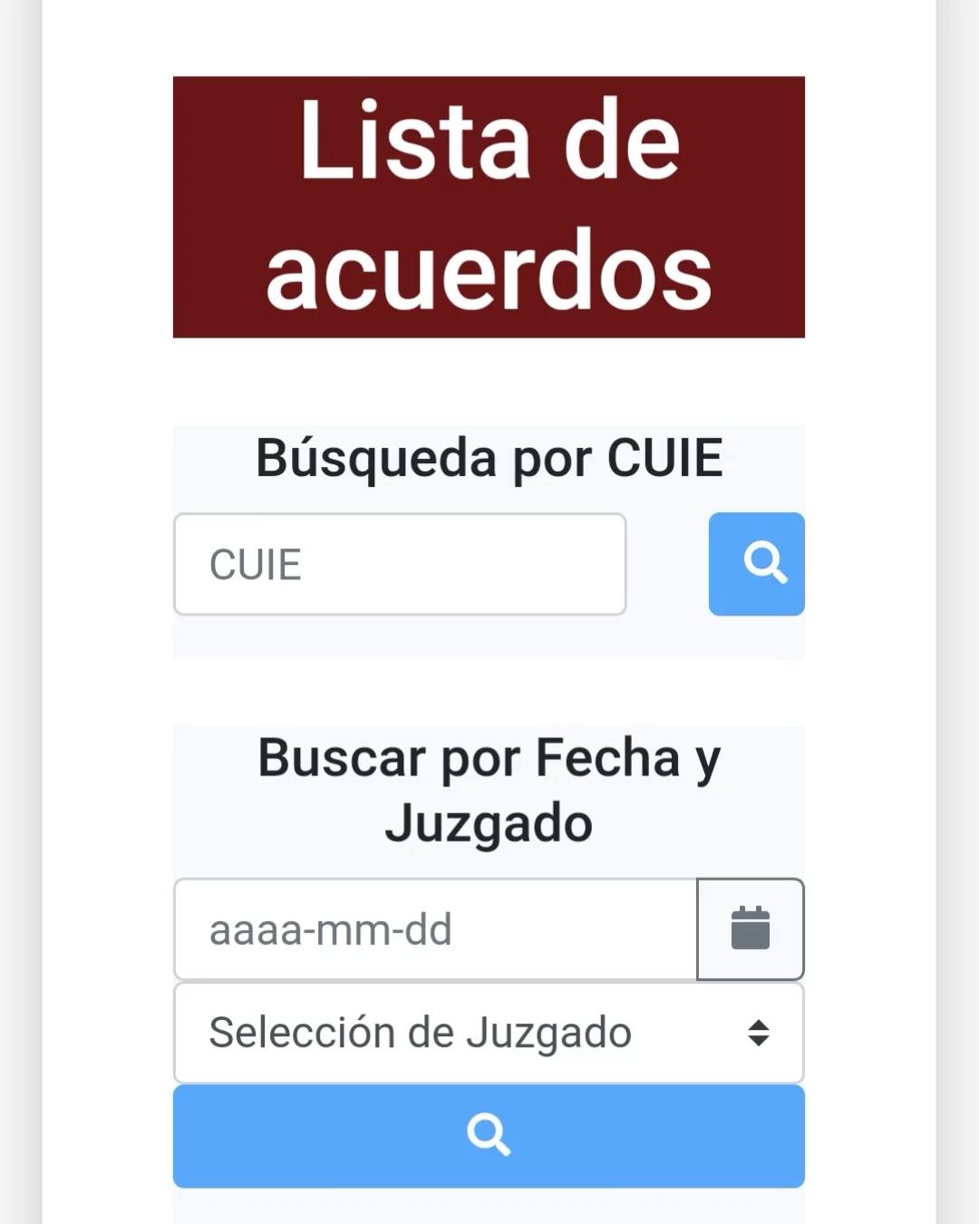 Introduce el número de expediente en el campo correspondiente o realiza la búsqueda seleccionando la fecha y el juzgado.