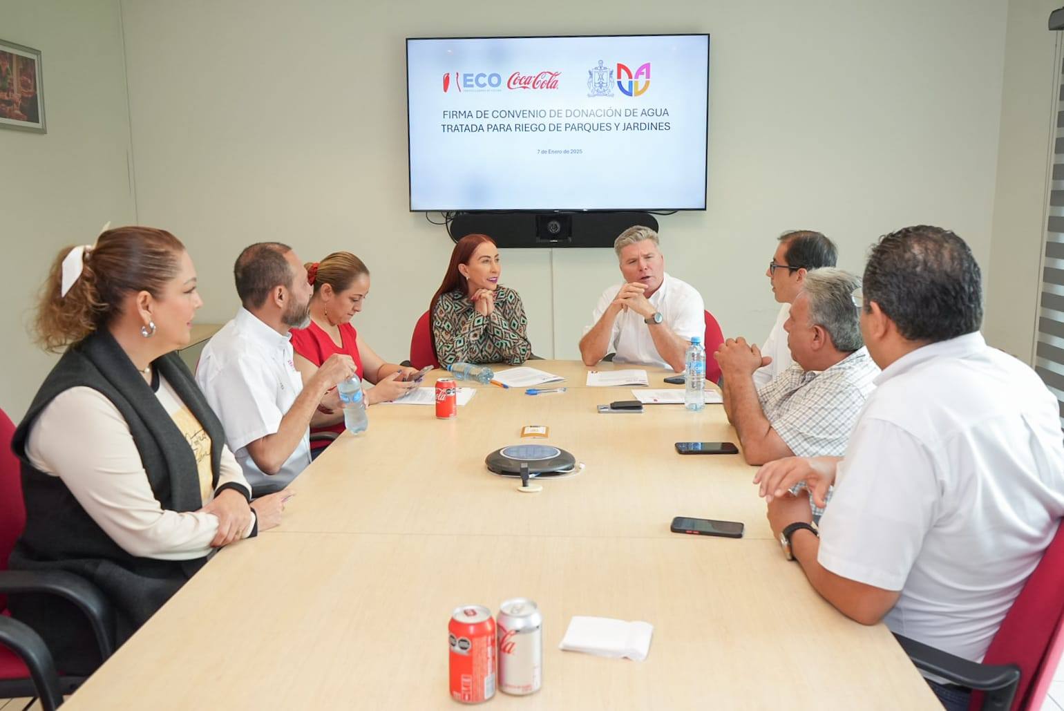 💧✅ El H. Ayuntamiento de Villa de Álvarez y Bebiendo SA de CV, empresa de Embotelladora de Colima, firmaron un convenio por el cual la empresa privada entregará al municipio de manera gratuita durante los próximos tres años, 50 mil litros de agua diariamente, para ser utilizada exclusivamente en el riego de áreas verdes públicas.