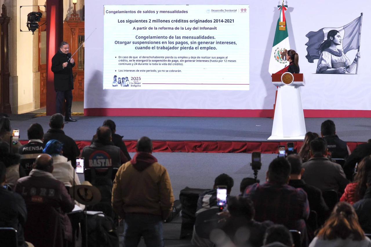 Por otro lado, estableció que, con la reforma a Ley del INFONAVIT se podrán congelar las mensualidades de otros 2 millones de créditos que fueron originados entre 2014 y 2021, suspendiendo los pagos, sin generar intereses, en caso de que la persona trabajadora pierda su empleo.