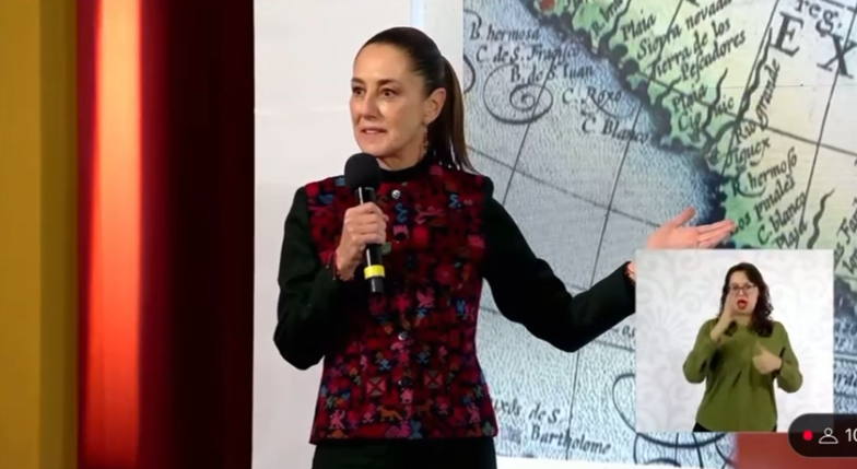 * En La Mañanera de este jueves la Presidenta de México presentó un mapa de América Mexicana desde inicios del siglo XVII.