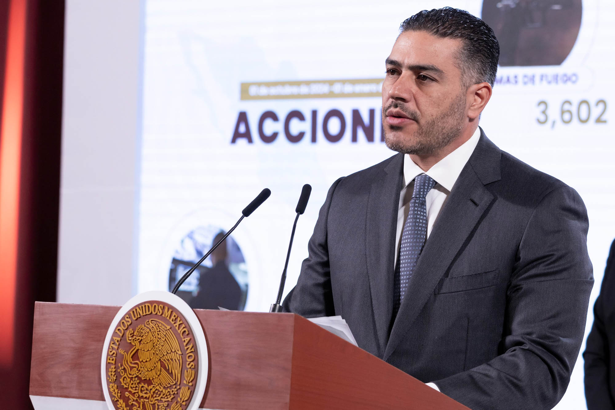 El secretario de Seguridad y Protección Ciudadana, Omar García Harfuch, informó que, como resultado de la coordinación con la Secretaría de la Defensa Nacional, la Secretaría de Marina y la Guardia Nacional, del 1 octubre de 2024 al 1 de enero de 2025, se detuvieron a 7 mil 720 personas por delitos de alto impacto, se aseguraron más de 3 mil 600 armas de fuego; así como 66.5 toneladas de drogas, entre ellas 1,168 kilos y 561 mil pastillas de fentanilo, lo que representa más de 60 millones de dosis que no llegarán a las calles, a las familias y mucho menos a los jóvenes. “La construcción de la paz es nuestro objetivo común, y con la participación de todas y todos lo haremos posible en el futuro que nuestra nación merece”, aseguró.