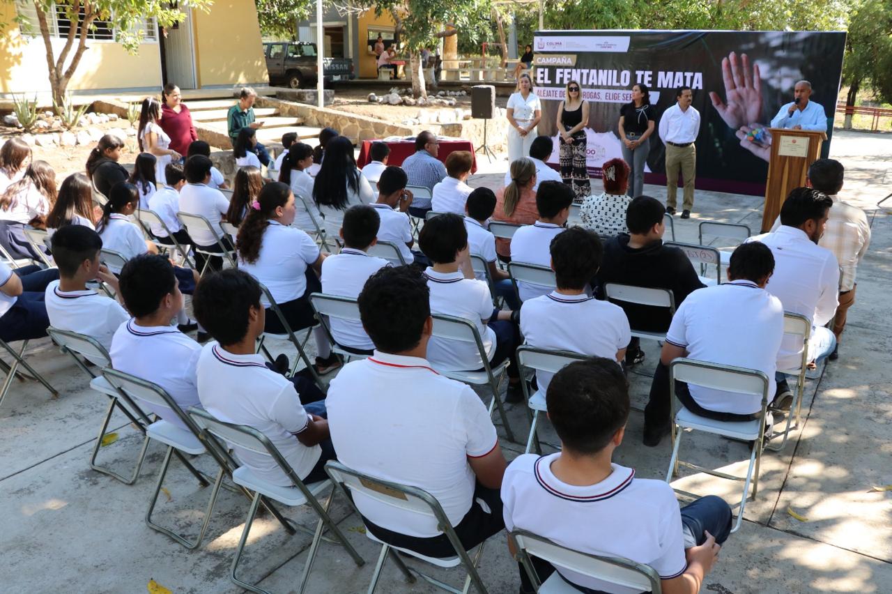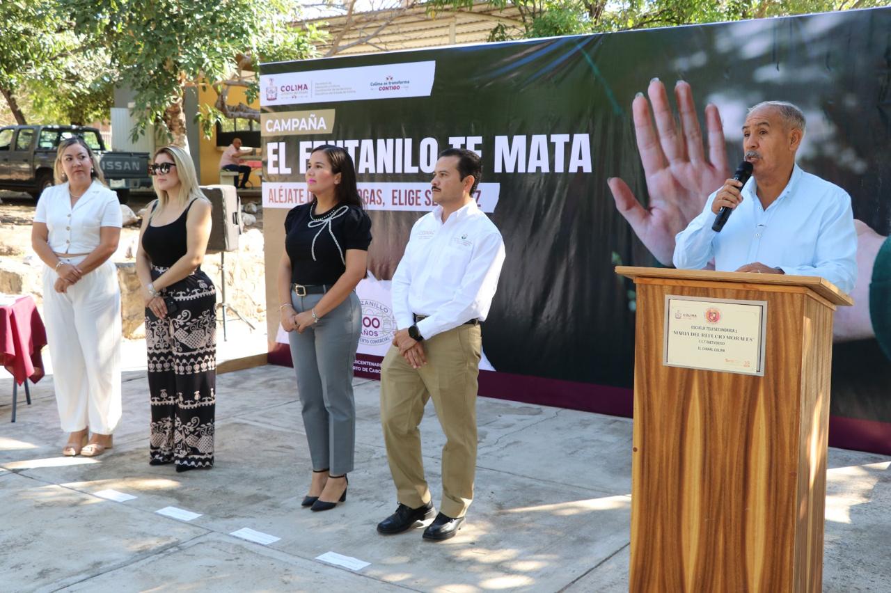 El secretario de Educación y Cultura del Gobierno del Estado de Colima, Adolfo Núñez González, encabezó el arranque de la estrategia nacional “Aléjate de las drogas, el fentanilo mata”, implementada por el Gobierno de México y la Secretaría de Educación Pública (SEP), cuyo esfuerzo se suma a las acciones impulsadas por la gobernadora Indira Vizcaíno Silva para el bienestar de la comunidad educativa.