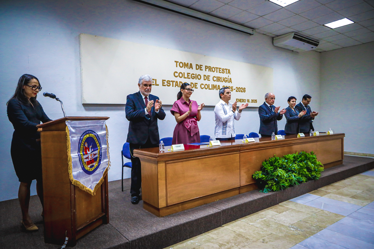 En la ceremonia también estuvieron: Martha Cárdenas, directora de los Servicios de Salud del Gobierno del Estado, en representación del secretario de Salud, Víctor Manuel Torrero; Emilio Prieto, director de la Facultad de Medicina de la UdeC; Dafne Delgado, presidenta del Colegio de Médicos del Estado de Colima y Julio César Naranjo, coordinador del comité de Colegios Incorporados de la Asociación Mexicana de Cirugía General.